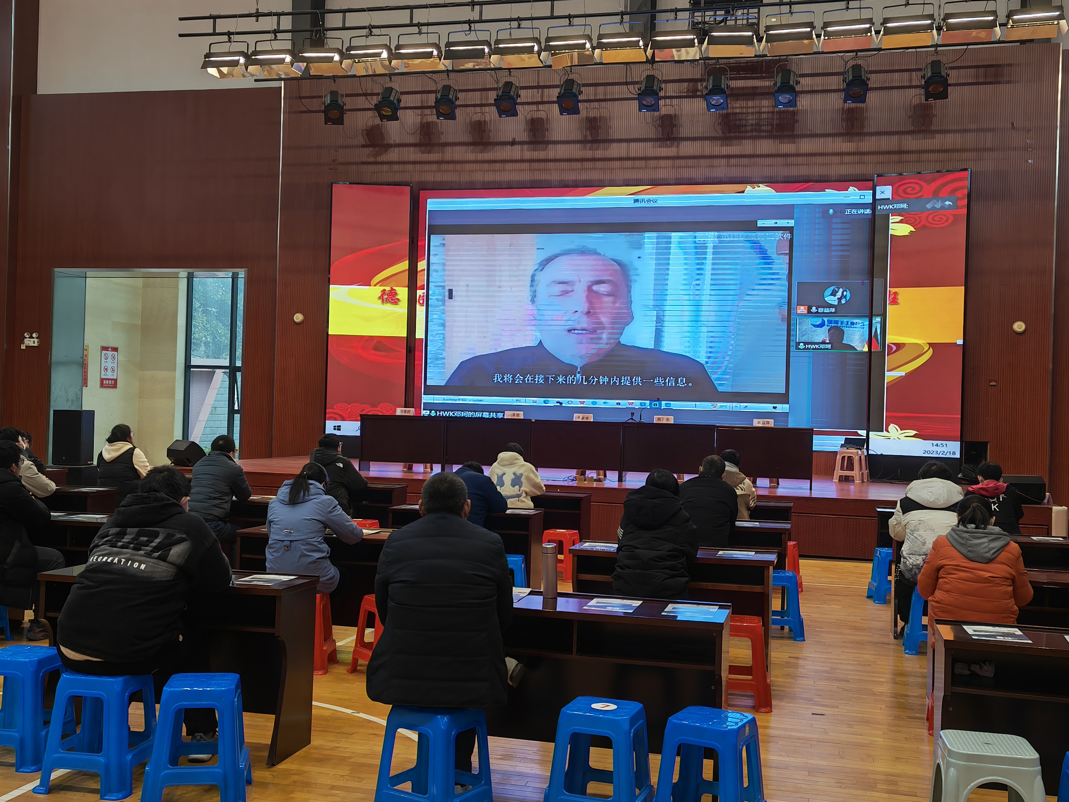 2月18日下午我校在体育馆举行了德国手工业行会HWK-金坛中专中德国际班组班动员会。出席动员会的有中德(常州)创新产业园管理办公室孔家幸、HWK中国部项目总监周雪莉、多宝登录平台副校长汤英俊、校企合作处处长陈云东,校企合作处副处长葛益萍以及2022年智能制造装备技术专业的学生及家长。会议由我校校企合作处陈云东主持。
