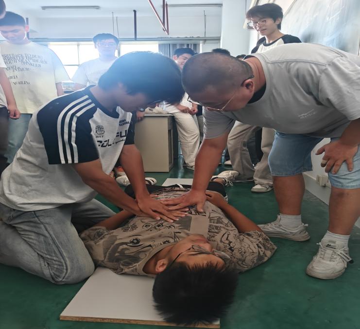 当日上午9时,演练正式开始。模拟场景设定为 “一名学生在实训室操作电器时,因违规插拔插头不慎触电倒地”。周围学生发现后,立即大声呼救 ,并第一时间向教师报告。教师指挥组迅速响应,一方面安排应急组疏散周边同学,防止围观拥挤造成二次危险;另一方面,保障组人员携带绝缘工具快速切断实验室总电源,确认断电后,用干燥木棍将“触电学生”与电器分离,转移至通风安全区域。救护组随即赶到,对“触电学生”进行意识、呼吸检查,模拟开展简单急救处理,并联系校医室进一步处置。整个过程中,学生们听从指挥、动作规范,教师分工明确、配合默契,从事故发生到初步处置完成仅用6分钟,充分展现了师生良好的应急反应能力。