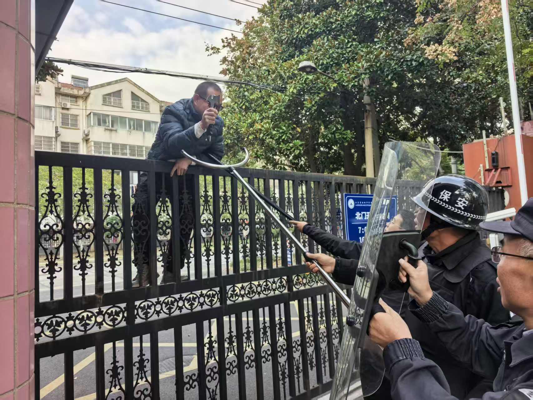 随后,演练转场至北门,模拟“外来人员从北围墙翻越闯入”的紧急事件。最小应急单元成员火速响应,在最短时间内抵达现场。队员们运用战术配合,对“闯入者”实施合围与控制,并同步设置警戒区域、疏散周边人员,整个过程指令清晰、行动果断、配合紧密,充分展现了应急单元的训练有素。