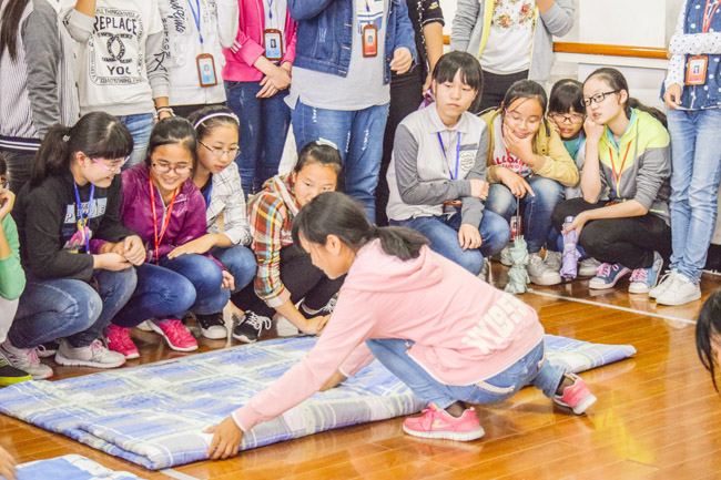 学叠被子、提升能力——文经部举行2015级新生宿舍内务培训
