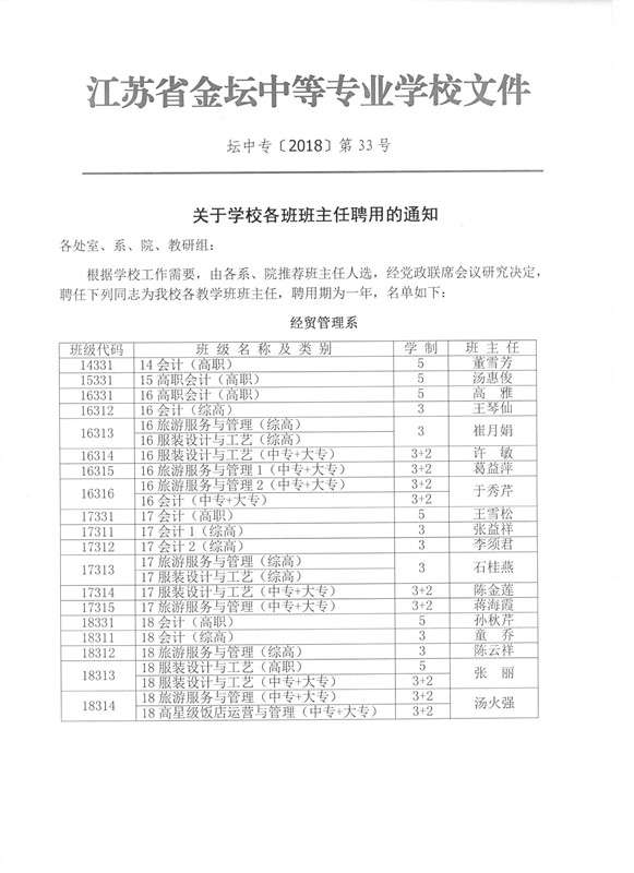 关于学校各班班主任聘用的通知