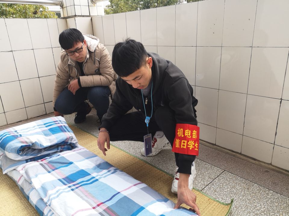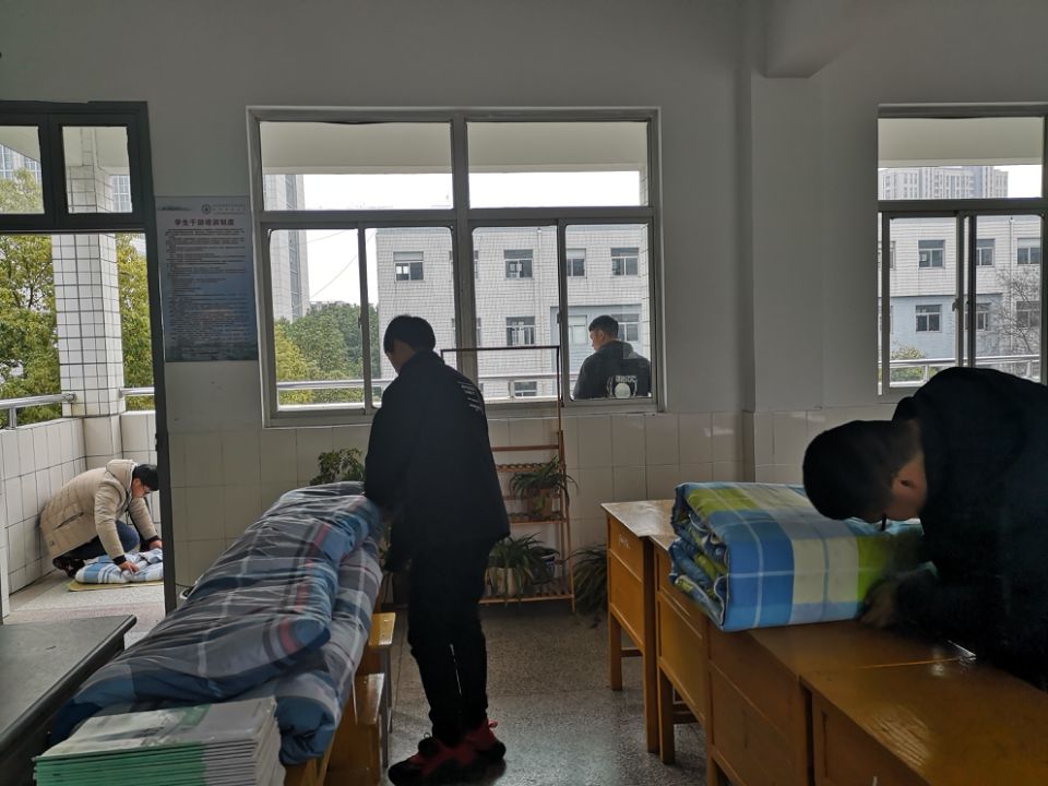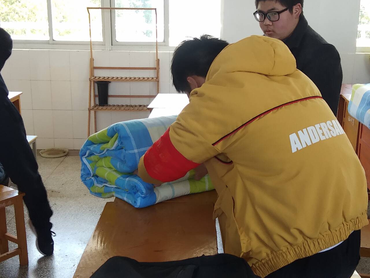 为加强宿舍内务建设,培养学生优良的生活习惯,激励广大住宿生营造良好的宿舍生活环境及浓厚的卫生育人氛围,全面提高学生的综合素质能力,我校机电技术系特组织手把手叠被子教学活动。