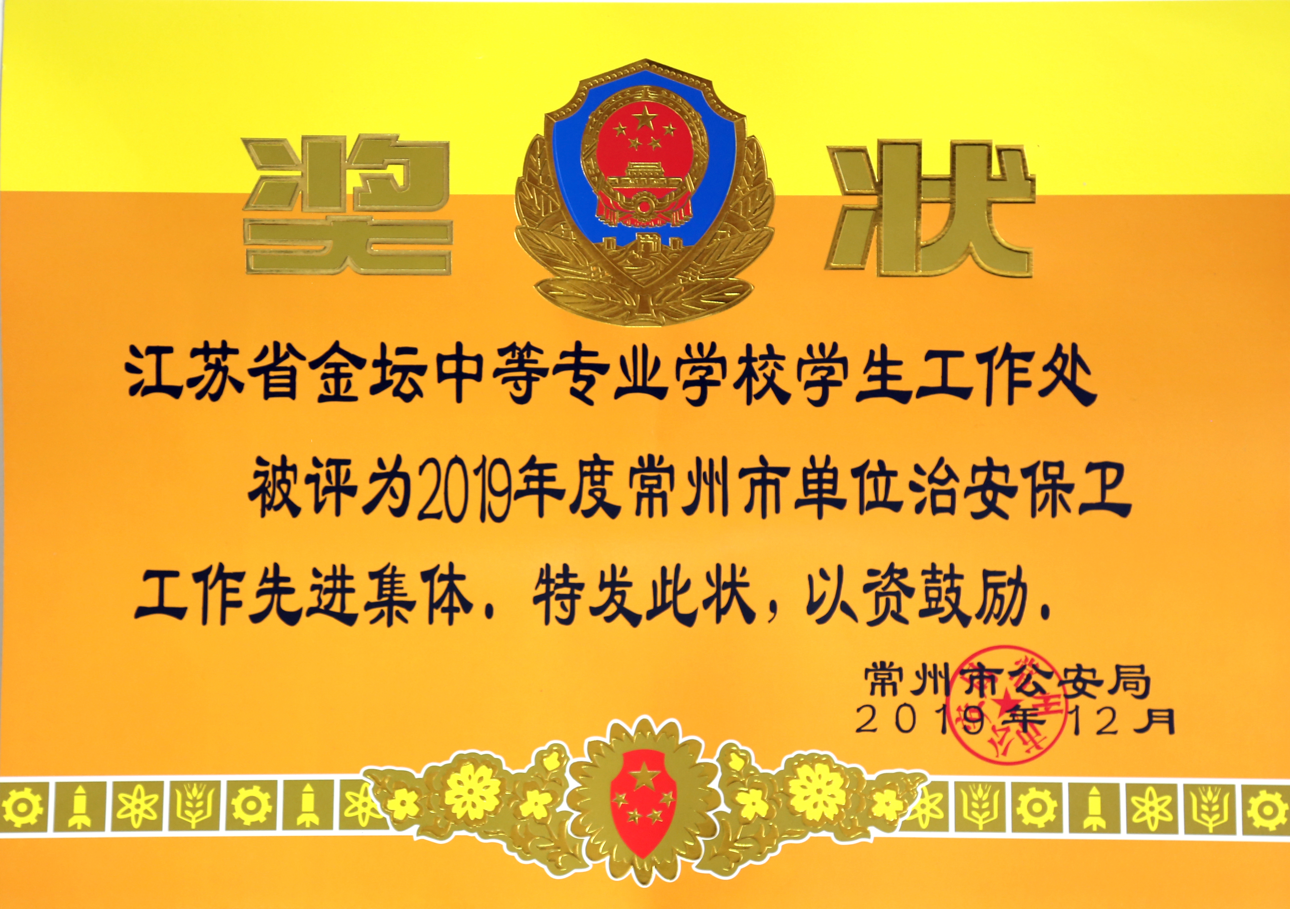 我校因坚持以习近平新时代中国特色社会主义思想为指导,按照党委政府的决策部署和公安机关的工作要求,认真履行主体责任,严格落实安防措施,扎实抓好防风险、保安全、护稳定、促发展各项工作,圆满完成新中国成立70周年大庆安保、进博会安保等各项安全保卫任务,为维护全市单位内部持续安全和社会治安大局平安稳定作出了积极贡献。近期学工处(保卫处)被常州市公安局评为“2019年度常州市单位治安保卫工作先进集体”。(撰稿:李志斌)