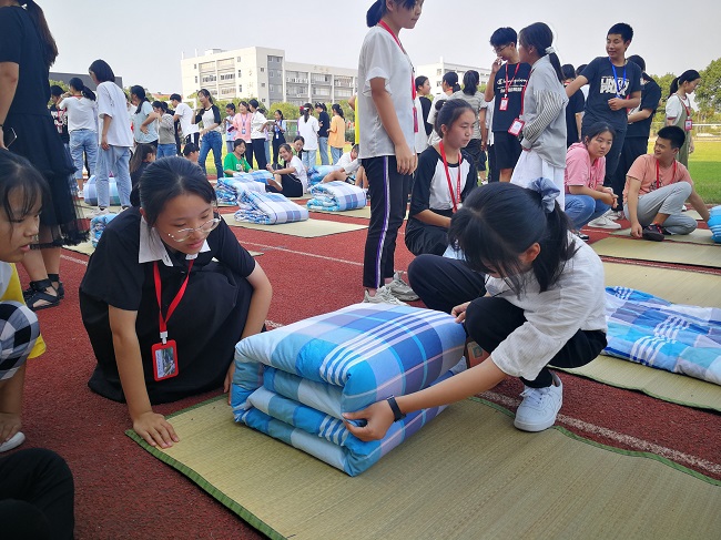 首先,进行了叠被子培训,系学生会提前就挑选了我系老生中的宿舍内务标兵作为小老师,他们用自己的实际行动向新同学展示了我系被子叠放的严格要求。新同学们被小老师们一丝不苟的动作所感染,积极主动地向小老师们虚心求教,并用心练习着每一个动作与步骤,不听话的被子在同学们的手中也叠得越来越好、越来越规范。