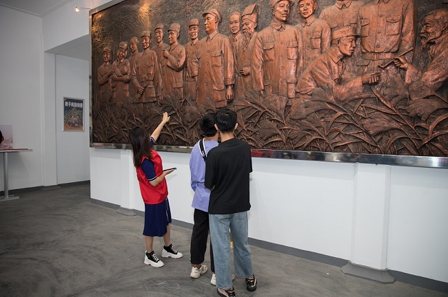 来访的同学们参观了苏皖抗战历史陈列馆,瞻仰了曹江临等五位抗战烈士的陵墓。他们踏着先烈们的足迹,一起走进当年烽火岁月里,在一件件展品前驻足,在一个个历史场景中思索,在庄严肃穆的氛围中默默感悟。通过这个历史的窗口,同学们重温了当年金坛人民英勇抗日的光辉历史和动人场景,真切感受革命先烈为党和人民的事业前赴后继、矢志不渝的初心。