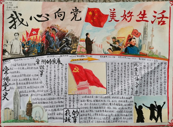 2021年是中国共产党成立100周年,也是全面建成小康社会、实现第一个百年奋斗目标后,乘势而上开启全面建设社会主义现代化国家新征程的开局之年。为认真贯彻党的十九届五中全会精神,培育和践行社会主义核心价值观,用优秀传统文化和中国特色社会主义先进文化涵养品德、滋润心灵,促进中小学生学习党史、了解党的知识,激发广大中小学生浓厚的阅读兴趣,根据金坛区教育局《关于开展2021年常州市寒假读书活动的通知》,我校开展了“我心向党·美好生活”手抄报大赛征集活动,通过撰写反映党史故事、常州故事和自我的爱国故事、奋斗故事、追梦故事,编创一张手抄报,表达爱党爱国爱常州的真挚感情,树立爱国情、强国志、报国行相统一的理想信念。