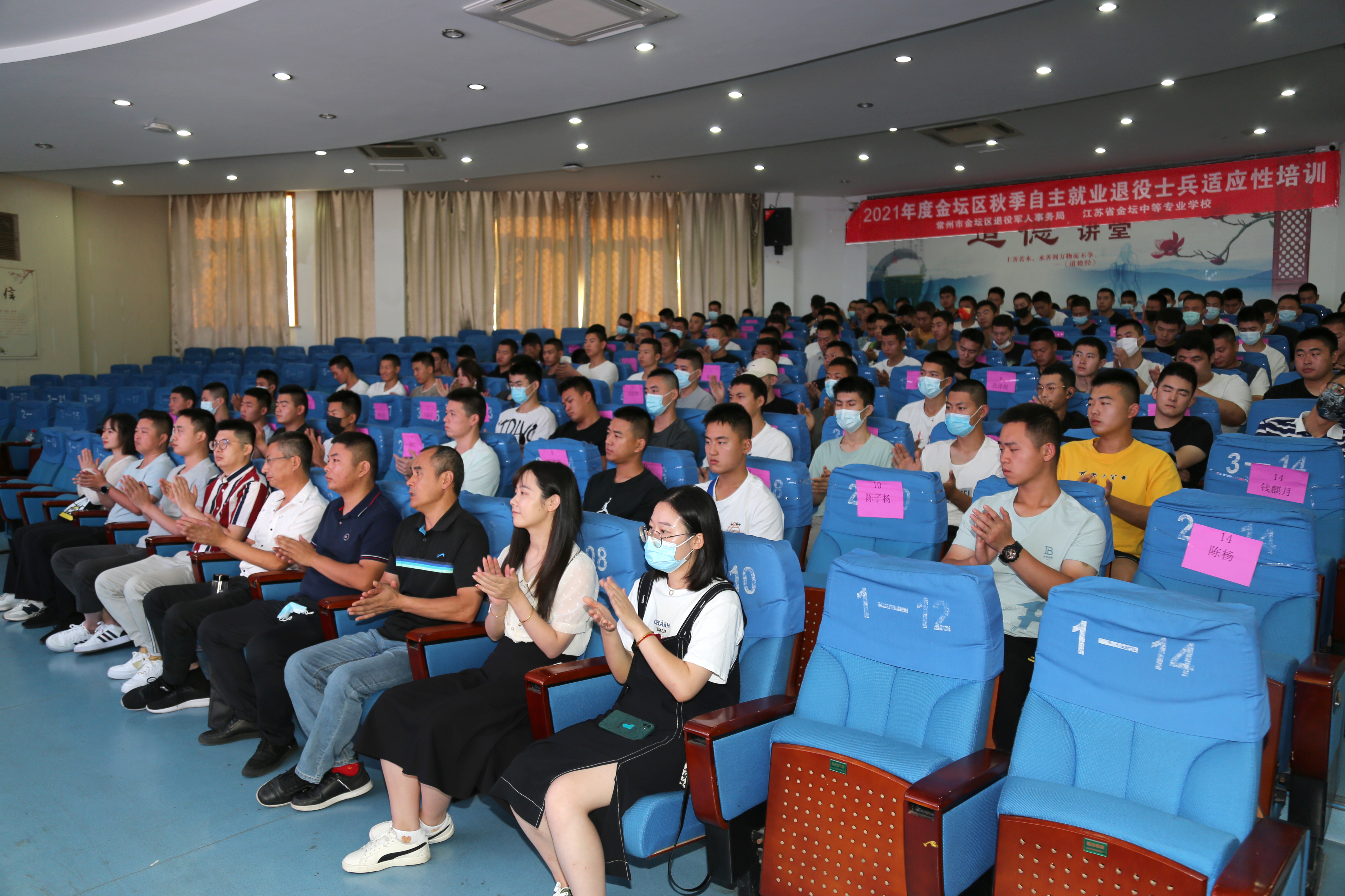 9月25日,金坛区2021年度秋季自主就业退役军人适应性培训在我校报告厅举行开班仪式。全区138名自主就业退役士兵,除复学人员外,均参加了此次培训,参训率达100%。区退役军人事务局副局长张国强、区军人事务局优抚科科长周荣生、我校校长卞勇平、书记林静、副校长王理华、校企合作处处长陈云东等相关领导等出席了仪式。区军人事务局优抚科科长周荣生主持仪式。