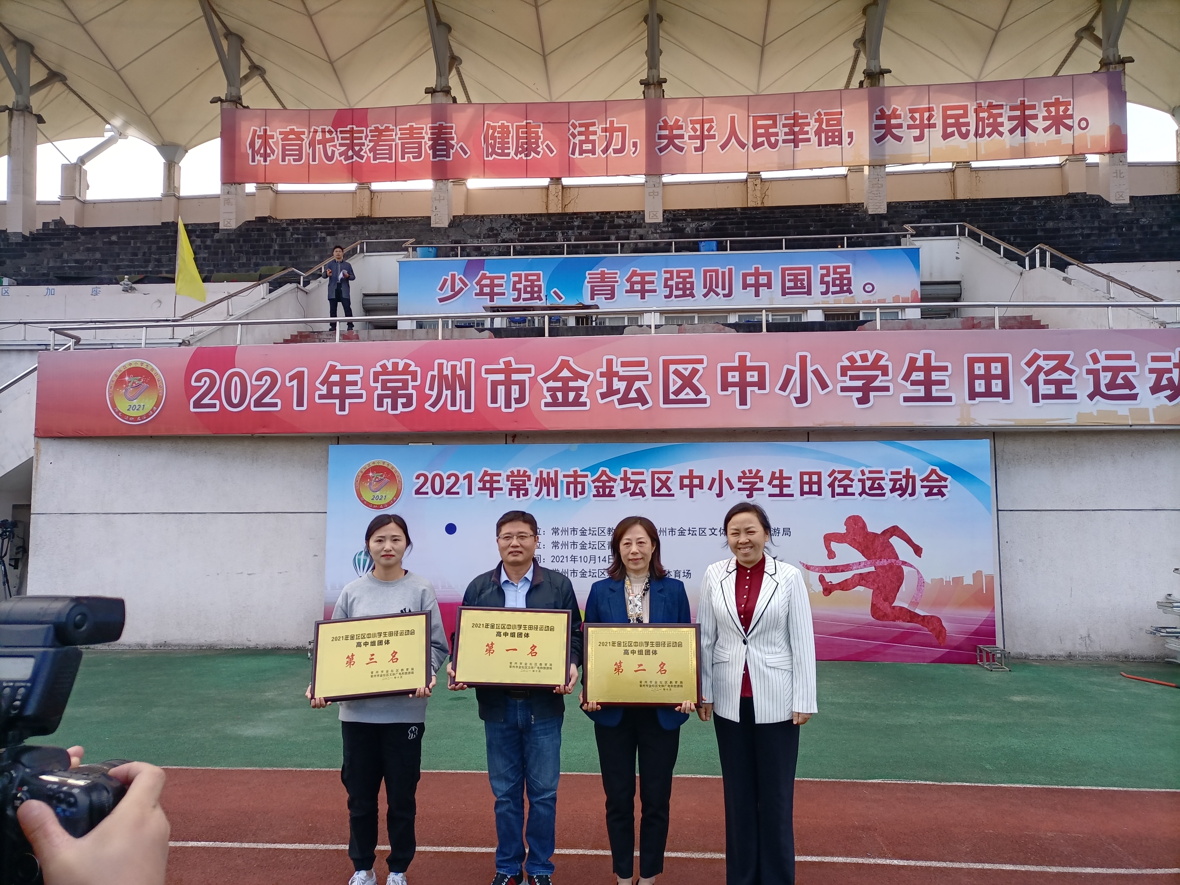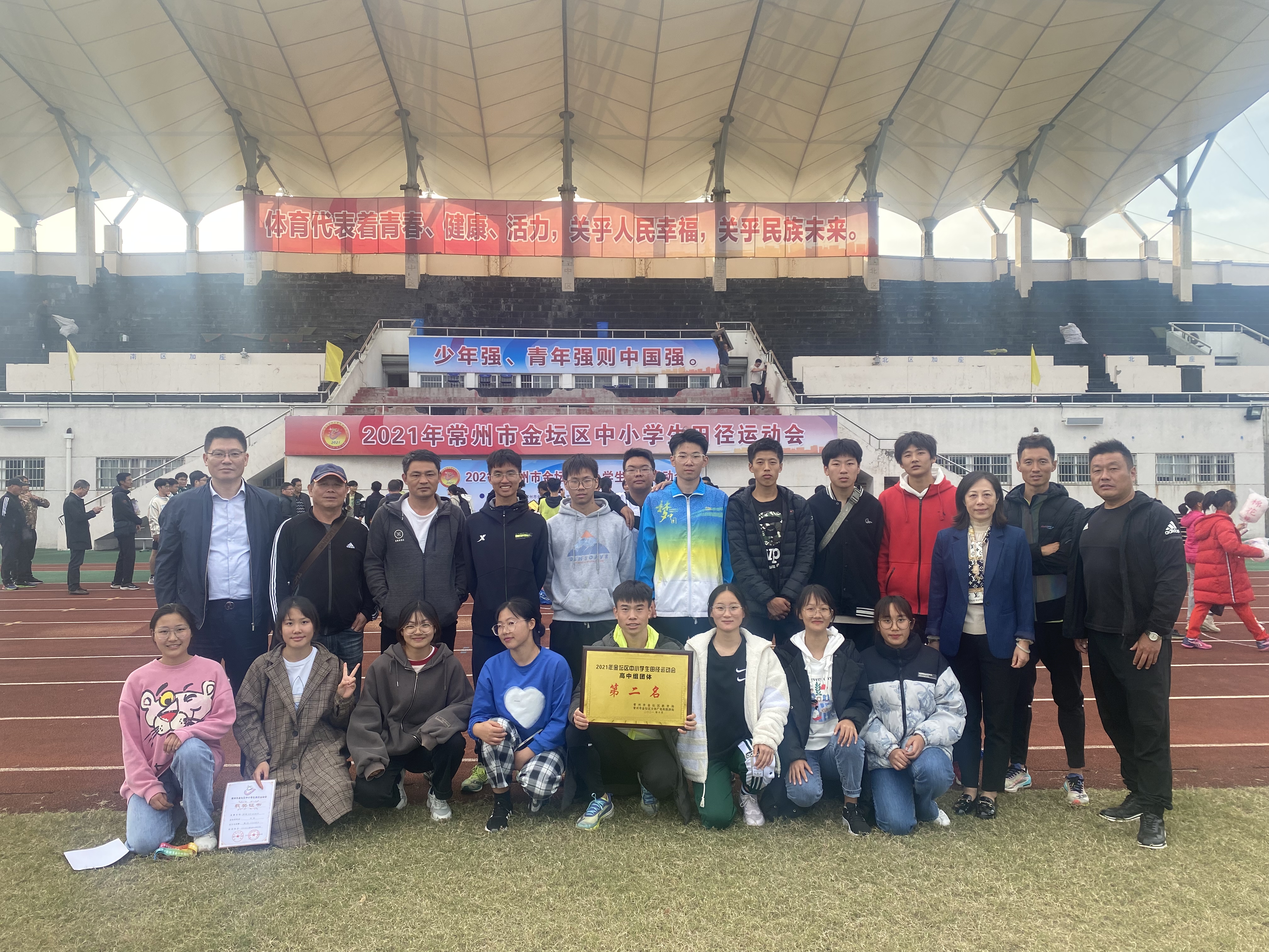 在刚刚结束的2021年常州市金坛区中小学田径运动会上,我校运动健儿经过三天的奋勇拼搏,最终获得高中组第二名的好成绩,特此向他们表示祝贺!