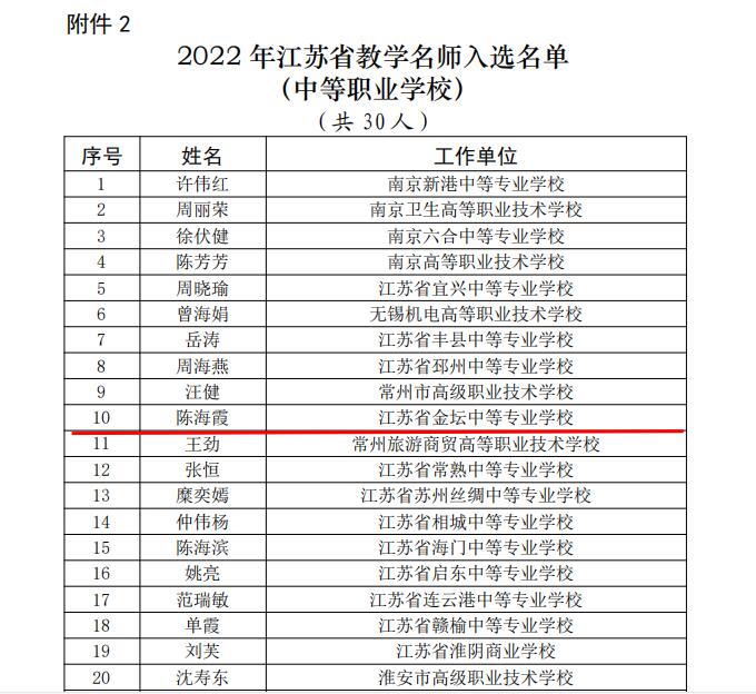 喜报!我校陈海霞老师获评2022年江苏省教学名师