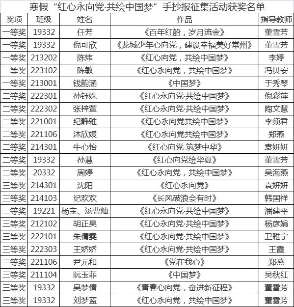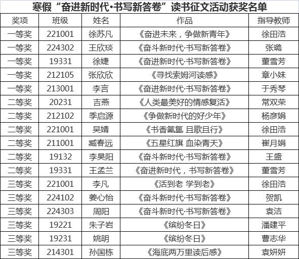2023年寒假读书活动评比获奖名单