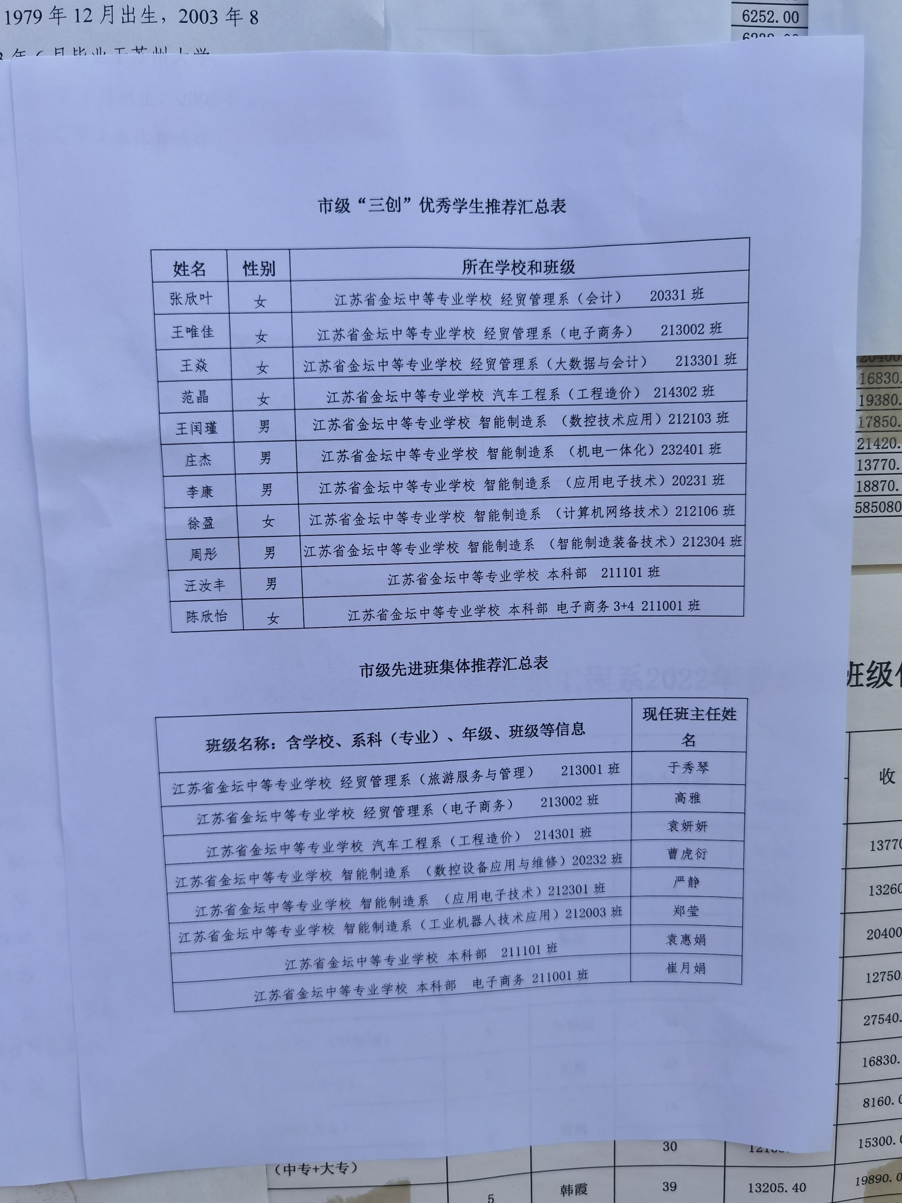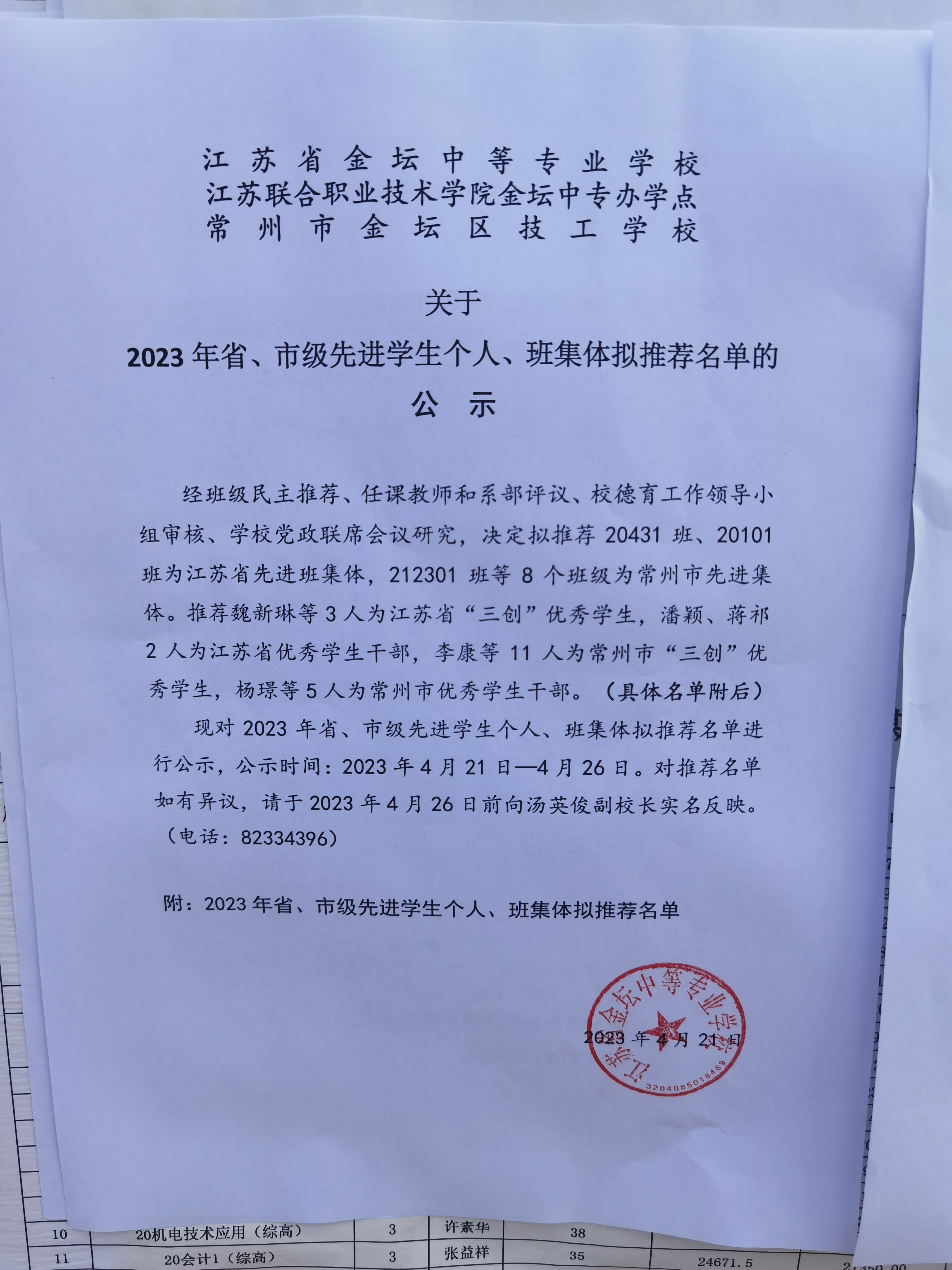 2023年省、市级先进学生个人、班集体拟推荐名单公示