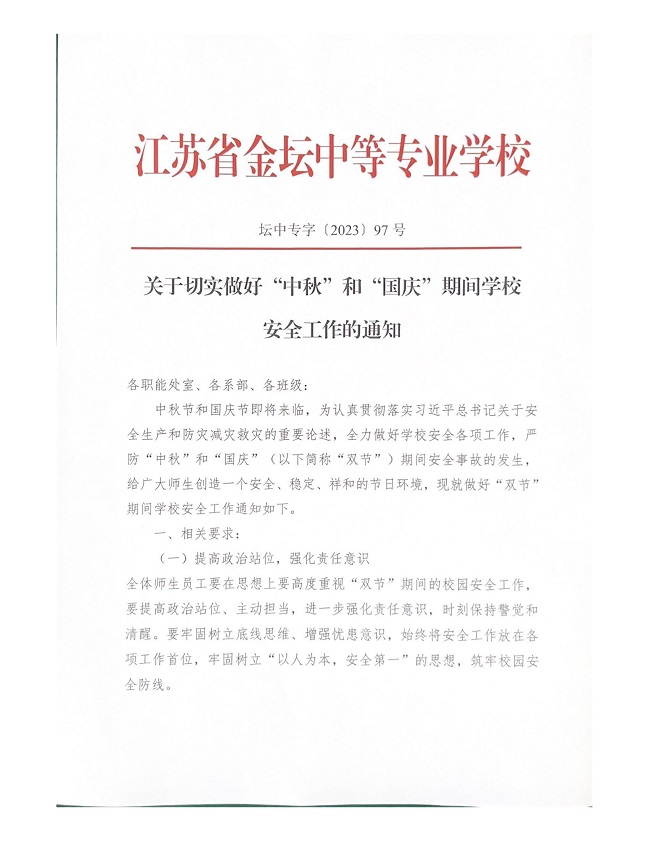 关于切实做好“中秋”和“国庆”期间学校安全工作的通知