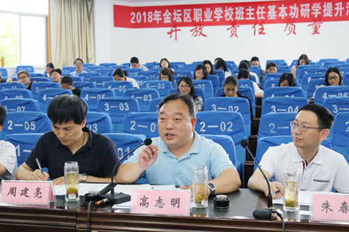 ------我校成功举办“常州市金坛区职业学校班主任基本功研学提升”大赛 为贯彻落实党的“十九大”和“两会”提出的“立德树人”教育根本任务,进一步加强班主任队伍专业化建设,展现班主任整体素质,引领班主任健康成长,金坛区职业学校班主任基本功研学提升大赛在我校成功举行。 本次班主任基本功研学提升大赛,根据江苏省职业技术教育学会和常州市教育局有关文件精神,重点考察中职学校班主任建班育人能力。 大赛分为笔试、面试两场比赛,第一场为笔试,主要考查班主任专业理论知识和主题班会方案设计能力,第二场为面试,分为教育故事演讲问答、模拟教育情景答辩两个环节。 5月30日下午全体班主任在校小阶梯教室参加了笔试比赛,区教育局职社科李长志科长、法监科邓毛苟副科长、学校分管班主任工作的周建亮校长、学工处张贵夕处长及三个系部的主要负责人担任监考。赛前每一位班主任都从班级的实际情况出发进行了精心准备,阅读了大量的书籍和相关资料,比赛中班主任们伏案疾书,笔耕不息,将自己历年的班主任经验积累的智慧付诸纸中,凸显了班级管理育人的能力。笔试试卷由区教育局组织调配专业人员批改择优。 6月1日下午在学校报告厅举行了面试比赛,在笔试环节脱颖而出的前10名班主任参加了面试比赛,全体教职工学习观摩。区教育局职社科科长李长志、教师发展中心副主任朱春平、教育科副科长高志明、校副校长周建亮以及学工处处长张贵夕担任评委。区教育局法监科邓毛苟副科长亲临赛场给与监督,确保比赛的公正、公开、公平。在近3个小时的比赛中,选手们以真感人、以情动人、教育性强的教育故事,尽显了拨动心弦的艺术;以思路清晰、灵活机智、针对性强的情景答辩,凸显了厚积薄发的教育机智,真实的向评委老师展示了自己扎实的基本功和丰富的带班经验,在有限的时间内充分展现了优秀班主任理应具备的正能量、敬业精神和教育情怀,呈现出了一个个形式新颖,异彩纷呈的精彩瞬间,赢得了阵阵掌声和喝彩。专家们的点评风趣幽默又紧扣比赛实情,对选手的优秀表现给予了高度评价,也对比赛中存在的问题给予了中肯的意见和专业的建议。经过激烈的角逐,张宇老师、石桂燕老师以综合成绩第一、第二的优异成绩脱颖而出,将代表金坛职校参加常州市班主任基本功研学提升大赛。 最后李长志科长对大赛做了20字总评:“规范有序、故事感人、情境真实、答辩睿智、技艺高超”。 他说这次比赛充分展示了班主任先进的教育理念,体现出处理复杂问题的良好能力,反应出职校班主任队伍建设的成效;他建议向所有参赛的班主任及向班主任这份平凡而伟大的工作鼓掌致敬;他强调班主任教育是一条漫漫长路,需要砥砺前行,不断摸索,更是一项智慧工程,需要开动脑筋,拓宽思路;他希望通过本次大赛的锤炼,职校的班主任队伍更加专业、健康和向上;希望通过系列活动的洗礼,班主任队伍更加自信、成熟和阳光。愿每一位老师都能成长为一个教育技艺高超的班主任,愿和老师们一起朝着教育事业的高峰努力奋斗! 此次大赛得到了区教育局领导的全程关注、指导和参与,学校党政领导也相当重视,将竞技大赛和班主任队伍建设结合起来,借助岗位能力比武的平台,极大的调动了广大班主任工作的积极性和岗位练兵的热情,有力促进了班主任岗位专业技能提升。 参赛班主任们也纷纷表示:此次班主任基本功大赛,不仅在于选拔,更在于提供一个良好的平台,是班主任交流思想、切磋技艺的盛会。通过参与和反思,每一位班主任再次定位自己的工作职能、教育理想,达到以赛代训、以赛促建、助力成长的目的。(撰稿:贡俊萍)