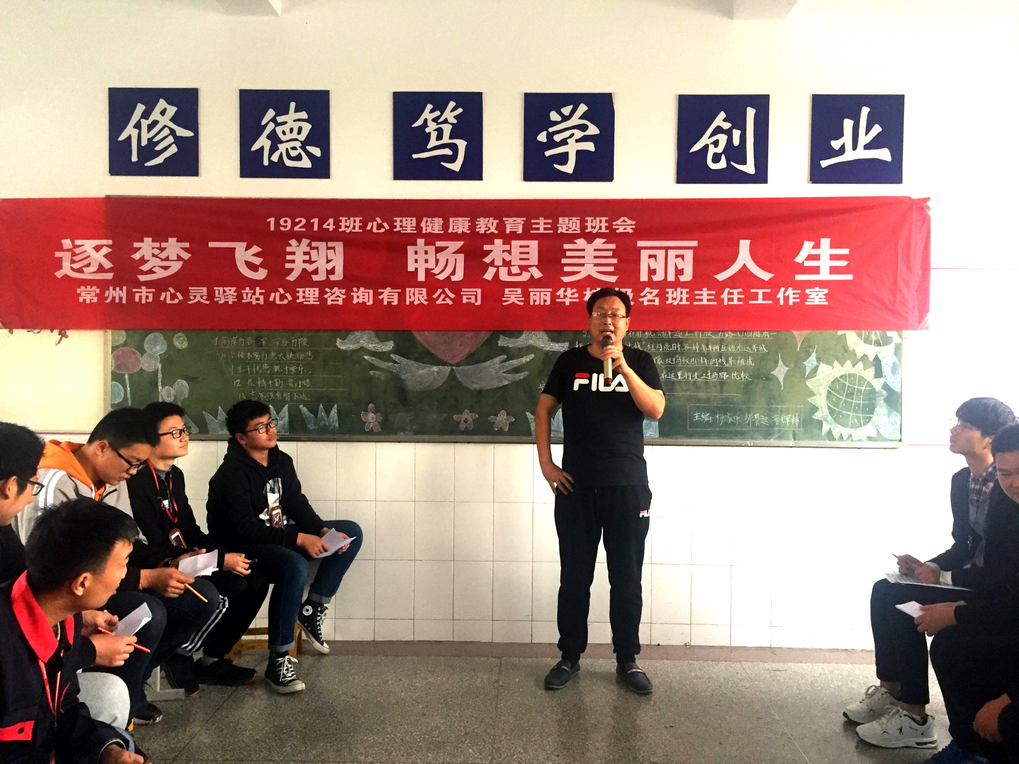此次主题班会观摩活动的核心内容是金夕琴老师的“擦亮你的金字招牌--积极情绪的培养”情景式教学。金老师作为国家二级心理师、绘画心理分析治疗师、江苏省心理咨询协会大中小学专业委员会成员、常州市心灵驿站心理咨询有限公司客座讲师,有着多年丰富的情感心理分析治疗经验。在此次主题班会观摩活动中,金老师紧紧围绕着“我是谁?”“将来的我怎么样?”两个话题展开,通过“小组对话”、“写给自己的一封信”“亮出自己的招牌”等丰富多彩的互动环节,把此次主题班会活动一次次推向高潮。