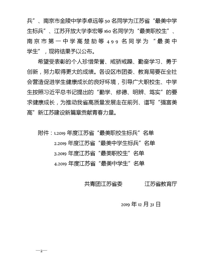 喜报:我校李月同学获评“江苏省最美中职生”称号