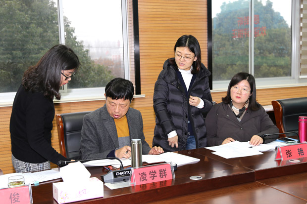 12月29日上午,常州市人社局职建处陈俊主任带领专家组一行四人莅临我校,对我校进行2020年常州市技工院校十项目标管理考核。金坛区人社局王志东副局长、冯建波科长陪同视导。我校校长卞勇平、党总支书记林静,以及副校长汤英俊、王理华热情接待了专家组一行。相关部门负责人参加了会议。 会上,卞勇平校长、王志东副局长先后致辞,对专家组的到来表示热烈欢迎,恳请专家组为学校发展指路引航。 汤英俊副校长向专家组汇报了2020年我校十项目标管理执行情况,分三方面介绍了学校的主要工作、办学举措及育人成效,也提出了学校发展面临的困惑以及下一阶段工作思路。