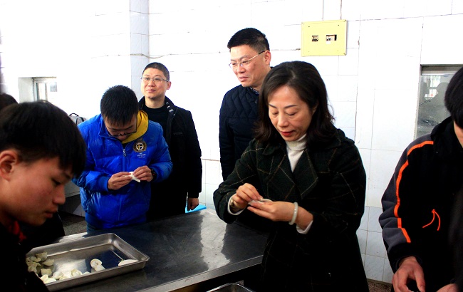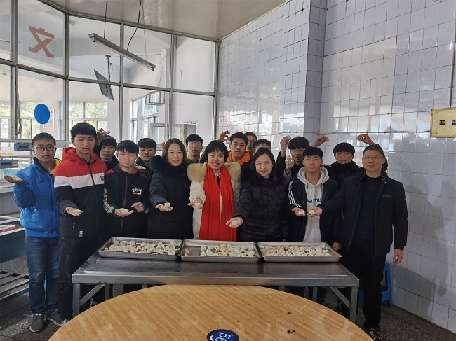 中专人·苏陕情·家乡味 ——我校举办宁陕学生“庆元旦、迎新年”联欢活动 新年的脚步悄然而至,岁月的年轮又圆了一圈美好的回忆。伴着冬日的浪漫气息,带着满心的欢喜,2021年1月1日上午,学校领导、老师及沧海志愿者服务中心师生和宁陕籍学生一同庆祝元旦佳节。宁陕县组织部挂职金坛干部徐璐主任、学校校长卞勇平、党总支书记林静及学工处、团委、智能制造系等部门负责人全程参加了活动。 在“苏陕一家亲,新年心语座谈会”上,林静书记代表学校向同学们表达新年的问候,她指出同学们遇到是一个美好的时代,国家正在蓬勃发展,社会建设需要各种人才,江苏和陕西对口帮扶协作,学习环境和生活条件正在逐步改善,我们要珍惜利用好这些机会,学好专业技术技能,改变自身,造福家乡。徐露主任也给同学们带来了新年礼物,同时她勉励同学们要懂得感恩、珍惜学习机会、明确奋斗目标,以不负青春的姿态迎接挑战,创造美好未来。 座谈会结束后,师生们移步到食堂,共同包起了饺子,大家竞相动手,师生各展其艺,其乐融融。 中午,同学们品尝着自己亲手包的饺子,享受着自己动手的成果,感受着千里之外家的温馨。同学们纷纷表示:“虽然不能在家和父母亲朋共度佳节,但通过活动切实感受到了金坛中专大家庭的温暖。” 热乎的饺子,温暖的心,此次活动既是一次食育实践、劳动实践活动,也是对传统文化的传承和发扬,更是提供一个平台,促进了师生间的感情交流,增进了同学们的沟通与交流。(撰稿:李志斌)