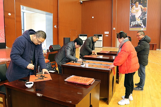 天气虽然寒冷,但现场人头攒动,个个喜笑颜开,气氛十分热烈。有的驻足屏息观赏、仔细体味,有的精心挑选着自己喜欢的福字和对联,还有的帮助 书法家铺纸研墨,助添书写春联的激情。一幅幅饱含着祝福和节日喜庆气氛的春联,彰显出了我们中华民族优秀的文化传统和书法魅力,写出了我们每一个人对于来年美好生活的向往和祈盼,同时寓意着我校2021年各项事业红红火火,繁荣昌盛。