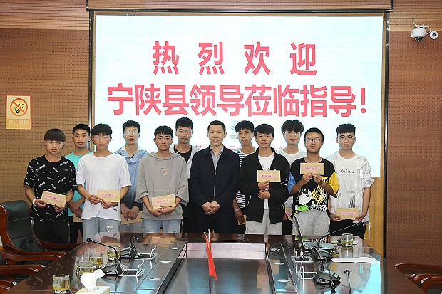 陈文明副县长向同学们表达了亲切的慰问。他首先感谢学校对学生的关心和帮助,对苏陕教育协作取得的帮扶成果表示充分的肯定。他对同学们提出了三点要求:一是要珍惜来之不易的学习机会,努力学习,掌握技能,学到真本领;二是要学会感恩,学会独立,照顾好自己;三是要树立榜样,带动更多的宁陕学子来金坛就读,进一步推动苏陕协作。最后祝愿同学们生活愉快,学业有成。 随后,陈文明一行与11名宁陕籍学生合影留念并发放了慰问金。