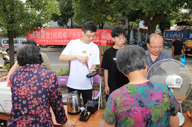 为扎实推进党史学习教育活动深入开展,充分发挥党组织战斗堡垒作用和参与社区建设、服务群众的先锋模范作用,6月21日上午,学校党总支与结对共建单位尧塘街道水北社区水北村委联合开展了以“送技进社区 温暖百姓心”为主题的为民办实事实践活动。学校党总支书记林静、尧塘社区主任虞国新、水北村委副书记周文杰以及我校20多名党员、盟员、志愿者参加了此次活动。 学校党总支始终牢固树立“一盘棋”思想,积极组织党员先锋队、校民盟支部和志愿者队伍“三条战线”与党建共建单位尧塘街道水北社区水北村委相互配合分工合作,深入基层,走进社区,全面倾听群众的所思所想所急所盼,深入开展党史学习教育“我为群众办实事”实践活动。活动中,党员先锋队、盟员、志愿者带领学生们利用掌握的专业技术技能,为社区居民群众提供家电维修、修衣改衣、招生咨询、反诈骗知识宣传、生态文明知识宣讲等服务。丰富的内容,多样的形式,热情的服务,吸引社区群众驻足观看;真诚的微笑,精彩的宣讲,适时的互动,促使广大群众参与其中。面对面的沟通交流,让职业教育零距离走进了居民的生活;优质的服务,充分展示了职教党员师生的良好风貌;精湛的专业技术,赢得了群众的一致好评和赞誉。活动组织井然有序,成为尧塘街道水北社区一道亮丽的风景,促进了学校党组织与尧塘街道社区党建联建向深度和广度拓展延伸。 校党总支书记林静强调,党史学习教育,不仅要学懂弄通,更要做细做实。此次“我为群众办实事”活动,是我校开展党史学习教育的重要载体,是进一步联系和服务群众的重要手段,是坚持以人民为中心的发展思想的重要体现。她要求学校党员、盟员以及师生要以此次活动为契机,学史明理、学史增信、学史崇德、学史力行,主动帮助群众解决实际困难,提高群众的幸福感、获得感、安全感,从而提升学校党员为民服务的思想和能力,推进学校党建联建品牌向前推进。 此次为民办实事活动的开展,提高了我校得我知名度和美誉度,使广大党员群众真正感受到党史的深厚文化底蕴,更加坚定“四个自信”,做到“两个维护”;通过“学党史、颂党情、铭党恩、强党建”,更好地激发党员群众“干事创业”的斗志,以激昂饱满的精神状态和优异的成绩迎接建党一百周年。 (撰稿贡俊萍)