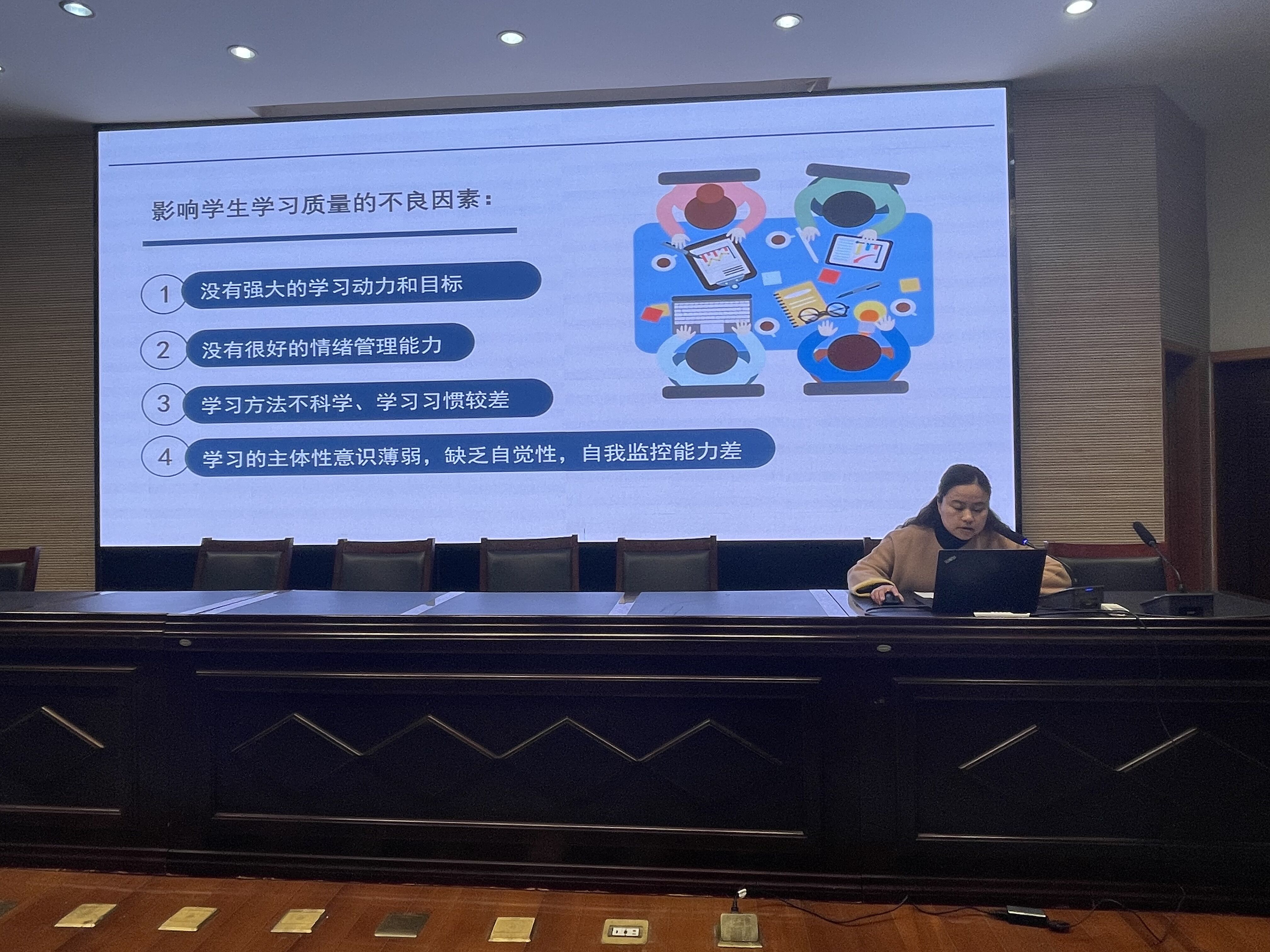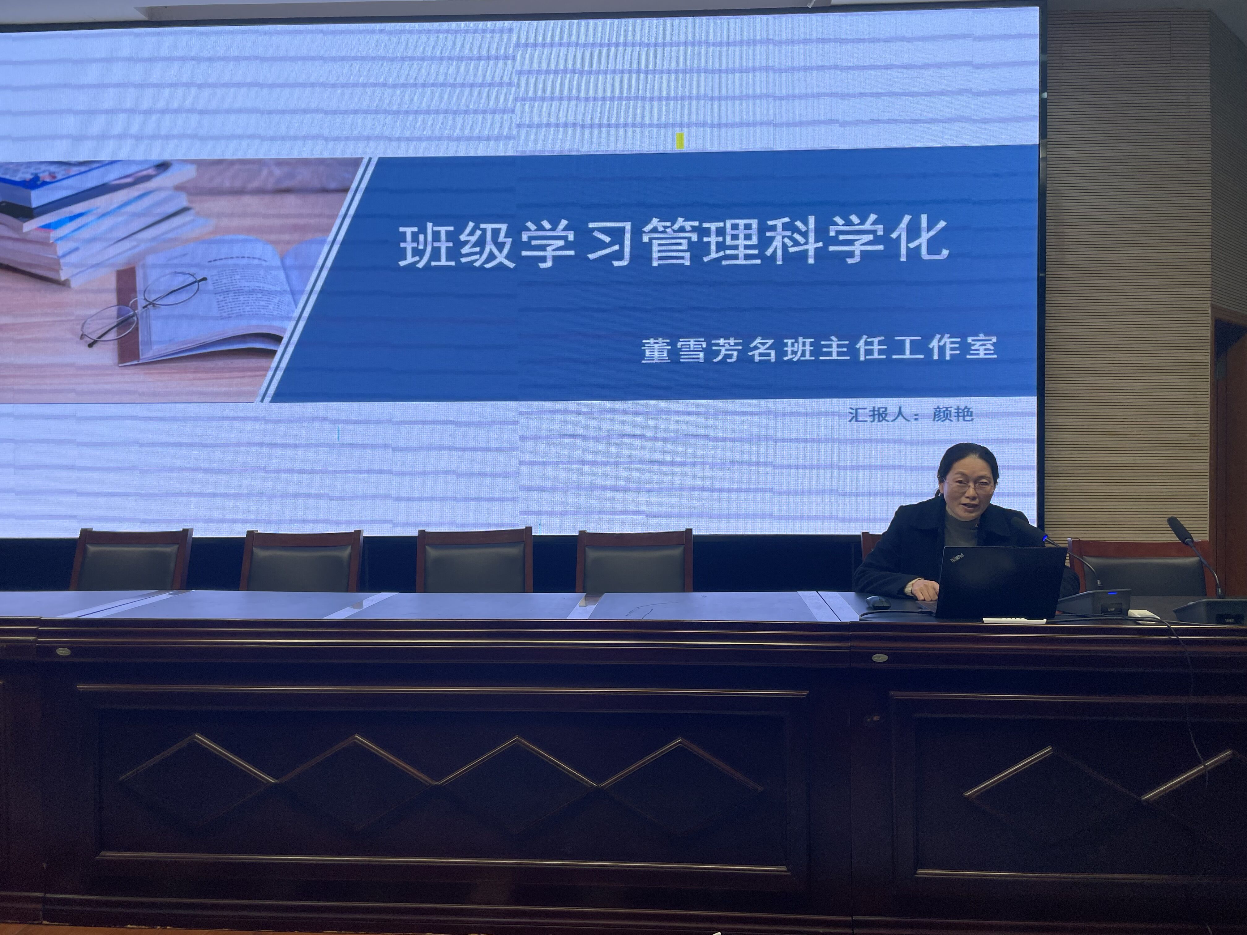 董雪芳校级名班主任工作室领衔人董雪芳、骨干成员颜艳根据班主任工作的实际需求作了校本班主任专题培训。董雪芳老师以问题导向和目标导向为出发点,对班级学习管理作了发言。她指出,学生的学习既离不开任课老师地辛勤付出,更离不开班主任的协助管理。在具体实施过程中既可以以《学生管理手册》中成绩考核为准绳的“法治”,又可以以班主任为核心的群体关怀的“人治”,切实做好两手抓才能让每个学生完成学业顺利毕业,答好为党育人、为国育才的“人才培育卷”。颜艳老师作了以《班级学习管理科学化》为主题的培训讲座。她结合自己的工作实际和反思,从诱发学生学习内动力、指导学生学会学习、使学生在快乐中学习及营造积极向上的学习氛围四个方面来诠释如何科学化学生学习管理。强调在班级学习管理中做到既发挥教师的主导作用,又极大地调动学生的主体性。在培训中颜老师还分享了工作室领衔人及其他成员在班级学习管理方面的诸多心得与经验。