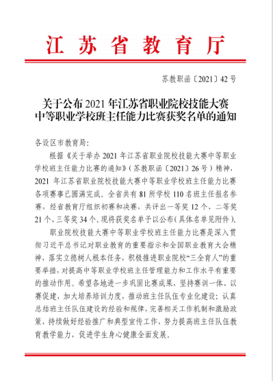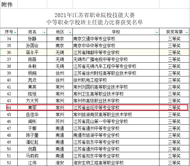 喜报:黄翠在2021年中等职业学校班主任能力比赛中获省赛三等奖、市赛二等奖