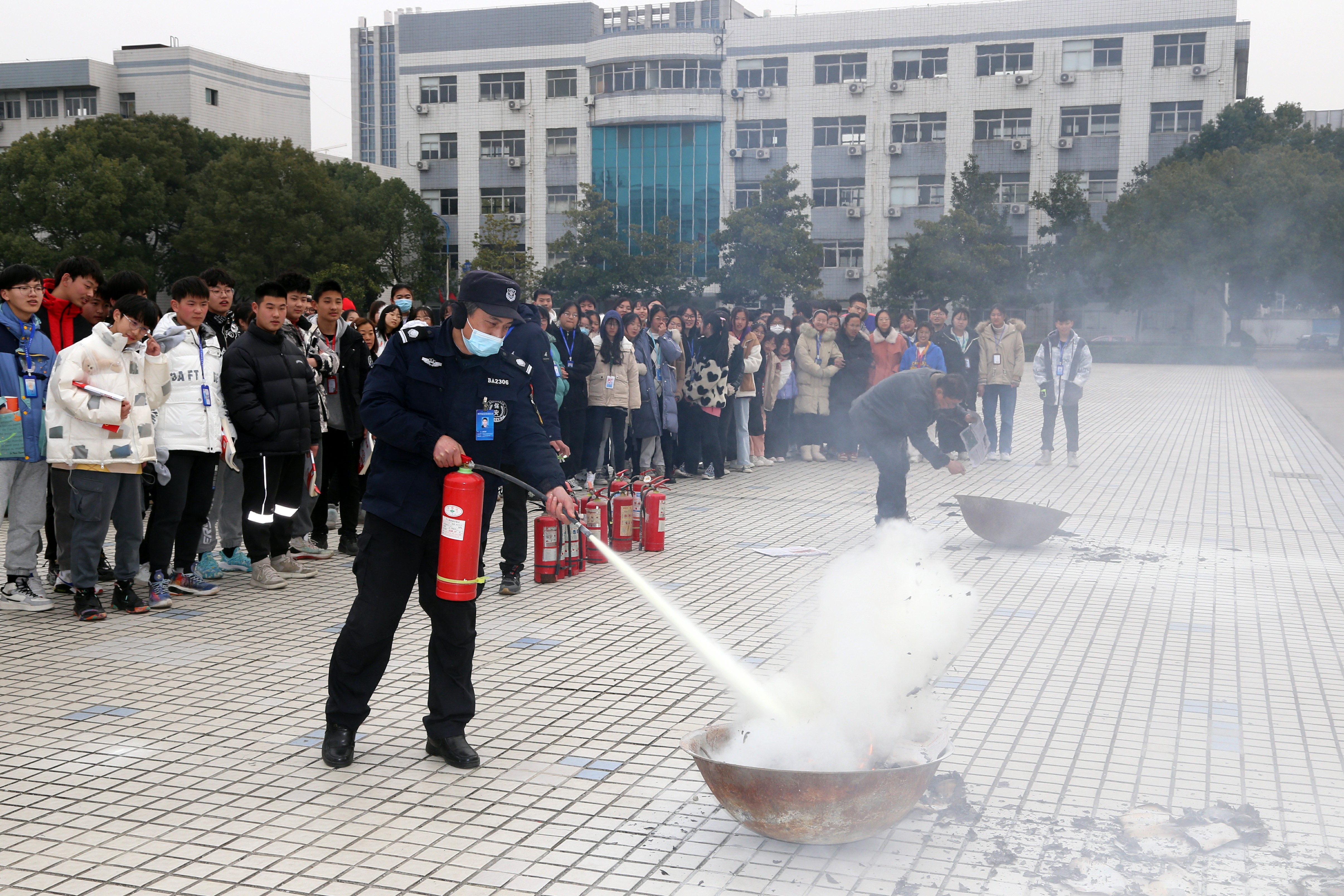 随着新学期来临,为全面提升我校学生安全教育工作水平,使学生积极迎接新学期,提高安全意识和自护自救技能。我校于2月22日下午开展了2022年春学期“开学第一课”消防演练、安全教育活动。消防安全实战演练,进行了灭火器的实际使用演练,现场演示、讲解了灭火器的使用方法,师生代表、宿舍管理员、保安、食堂工作人员分别使用灭火器进行了灭火操作演练,掌握了灭火器材的使用和灭火操作的基本方法。