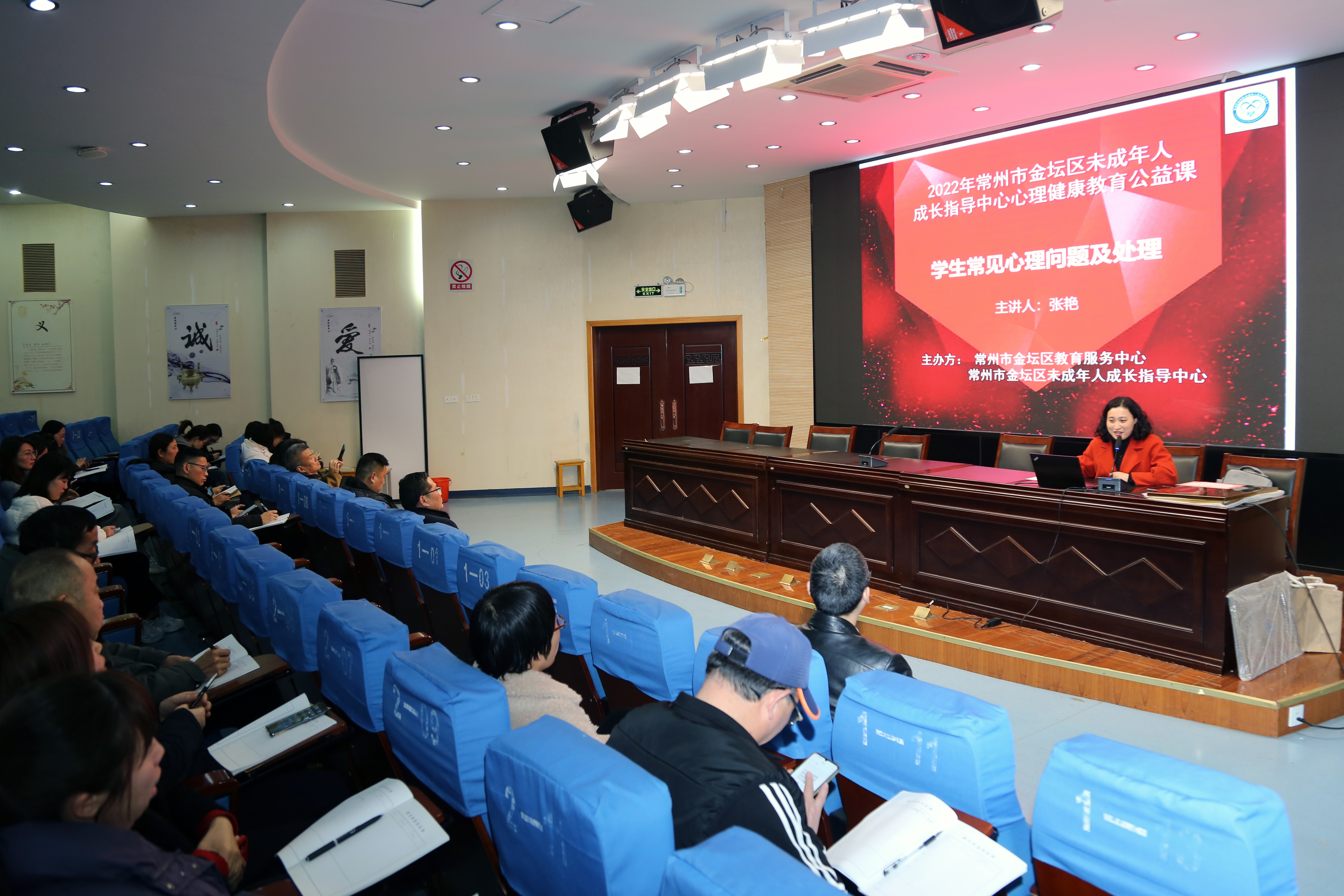学校特邀区未成年人成长指导中心、区及教育局教育服务中心、国家二级心理咨询师、省华罗庚中学张艳老师作了主题为“学生常见心理问题处理”的讲座。讲座中,张老师针对心理问题的形成、表现症状、诊断标准和应对策略做了详细讲解;就危机事件的预防,张老师从源头出发对有心理问题的学生要采取倾听的方式,引导学生正确的发泄情绪,在事件发生之后从家校层面采取多种措施,使学生得到及时正确的帮助。讲座中,班主任认真聆听,详细记录,对采取的应对措施低声讨论,揣摩研究。