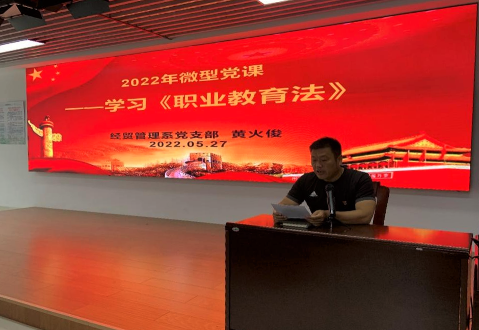 会上,黄火俊书记首先用微型党课的方式,针对新修订的《中华人民共和国职业教育法》带领全体党员同志做了全面的学习和解读,一系列的职教理念新提法,从法律、制度、政策等多方面提出未来职业教育发展的新方向新要求,尤其是明确了职业教育是与普通教育具有同等重要地位的教育类型,更是极大地促进了职业教育与普通教育的协调发展,为职业教育人才的培养从政策和制度上得到了保障,同时也打通了职业教育人才培养高层次高学历的通道,为职业教育的长久稳定发展奠定了基础。