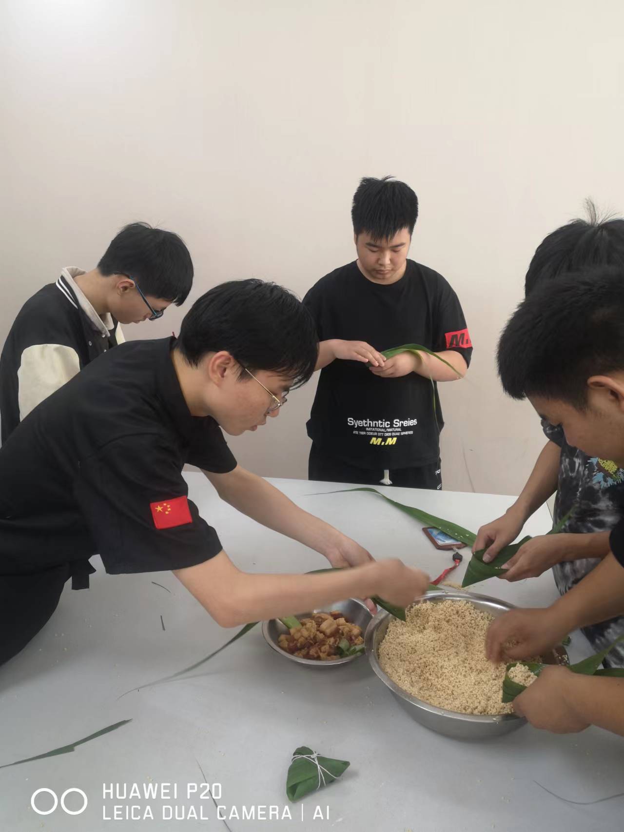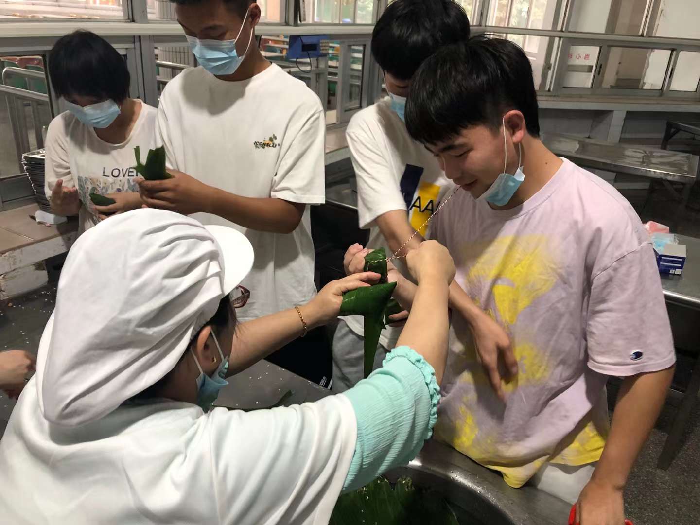 6月3日端午节当天,留校学生们在食堂工作人员的指导下,沉浸于“包粽子”的乐趣中,一片片粽叶在同学们手中飞转,劳动的快乐让手中的粽子更香甜。