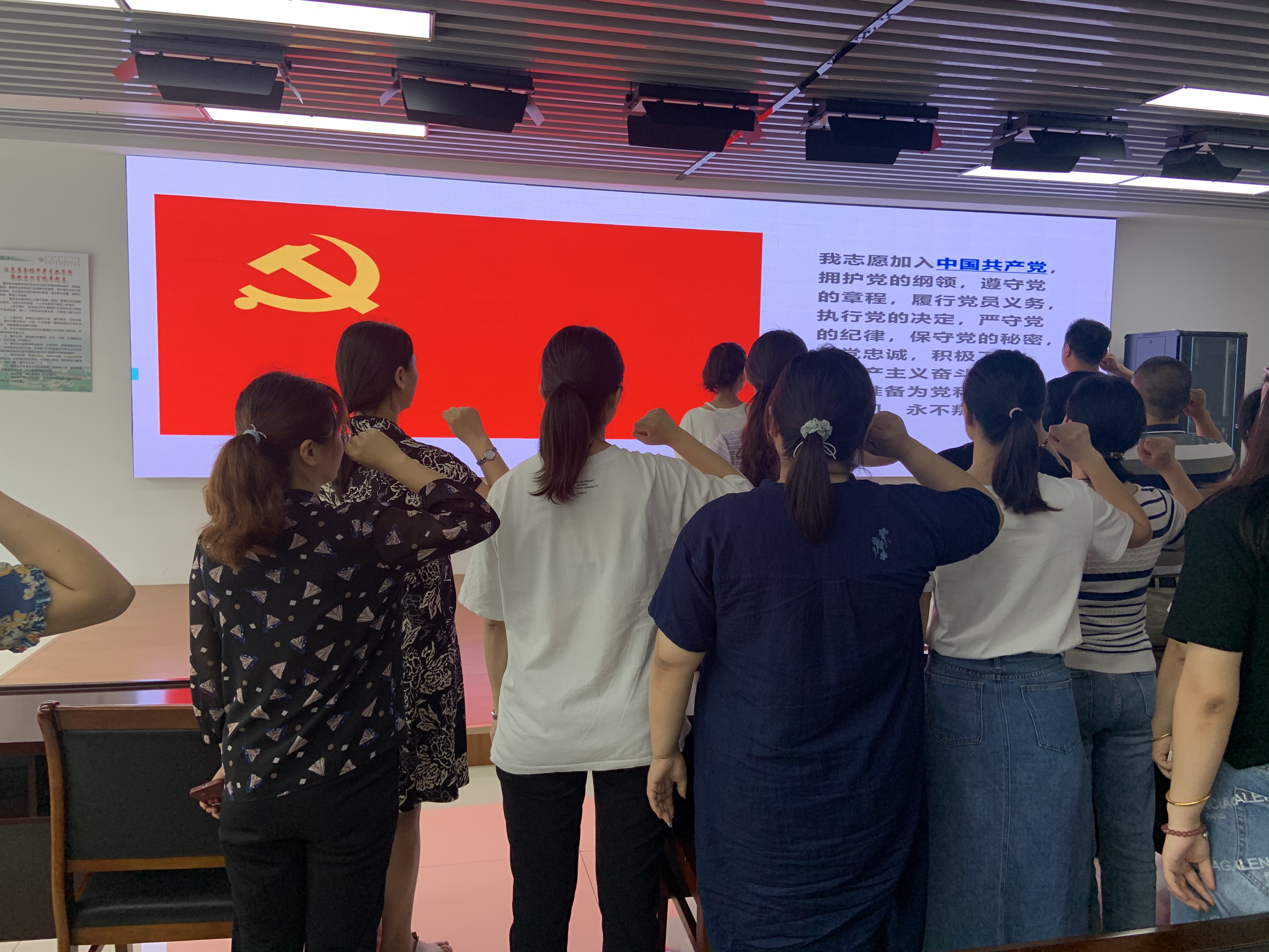 宣誓仪式是庄严神圣的一刻,是对预备党员进行入党教育的一个要环节。在黄火俊书记的领誓下,经贸支部的预备党员李晨飞同志和所有正式党员进行了入党宣誓,短短一百多字的誓词是党员们对党的庄严承诺。