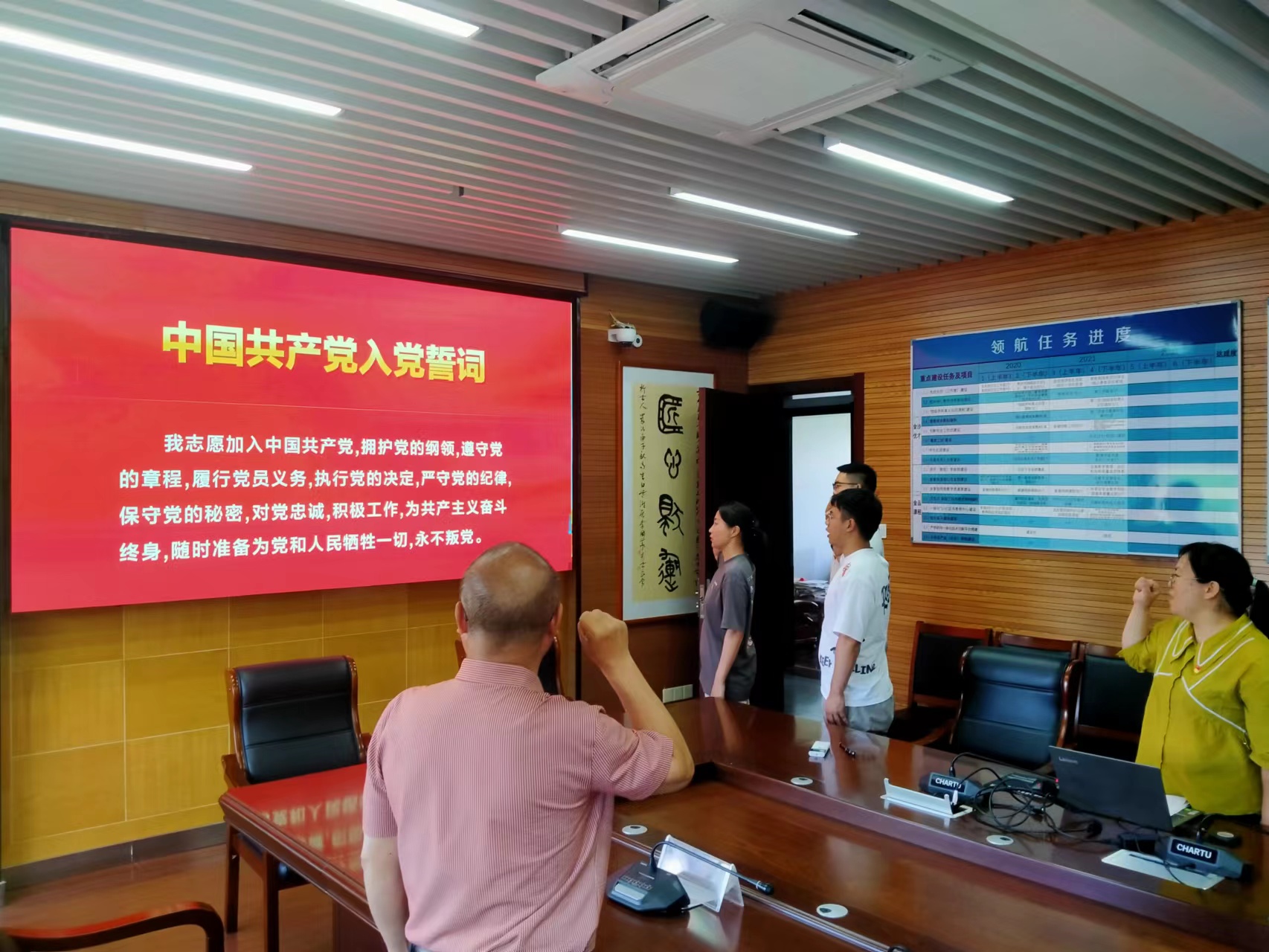 接着2021年转正的王迪、代建两位同志和支部全体党员同志们重温入党誓词。党支部组织委员顾春燕同志作为领誓人,带领大家高声宣读入党誓词:“我志愿加入中国共产党……”。这铿锵有力的宣誓声,让党员同志们再一次体验党员身份的光荣、党员使命的崇高,表达了全体党员同志坚定的政治信念和时刻不忘初心、矢志不渝奋斗的坚定决心,宣誓过程庄严神圣。