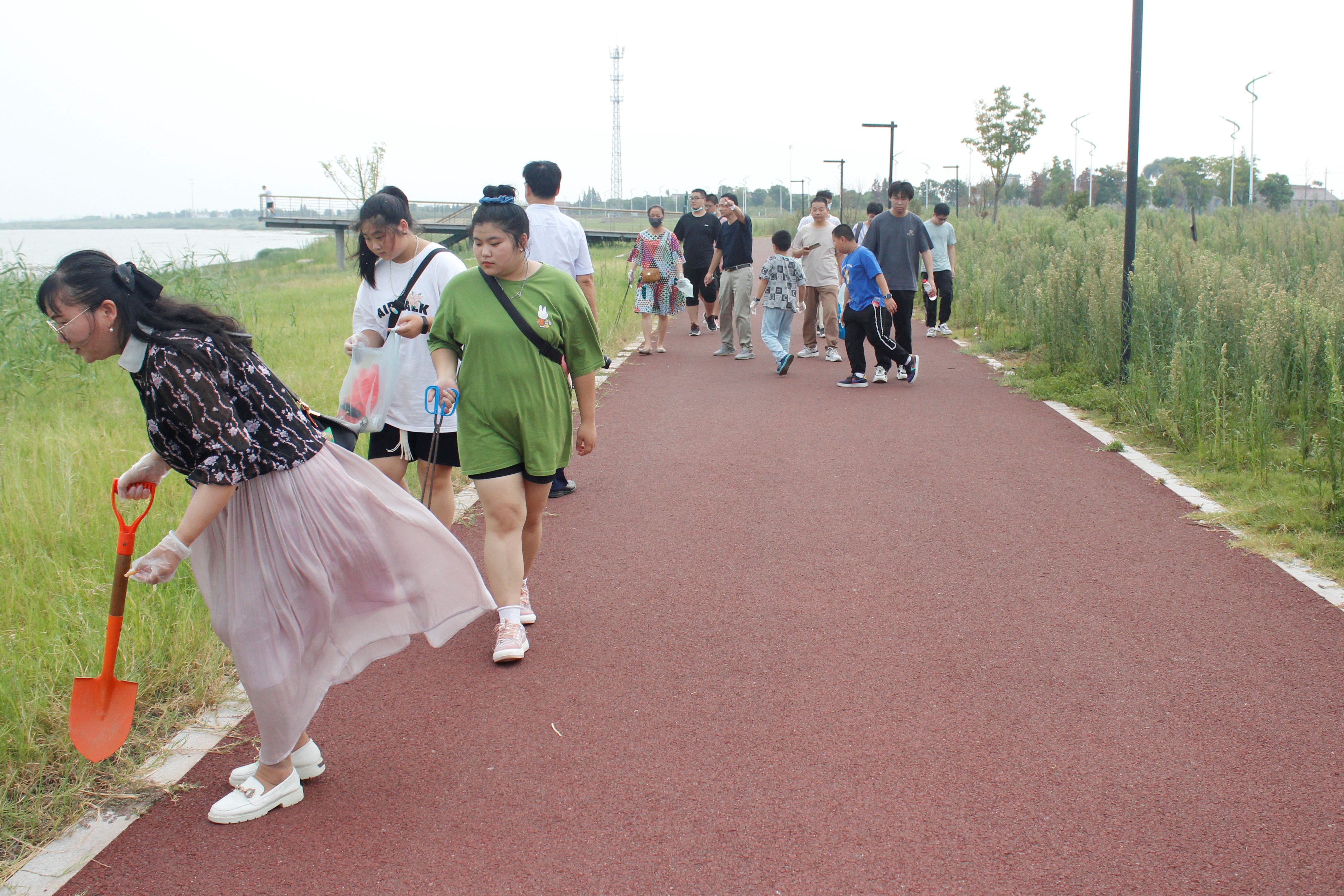 参观结束,师生一起游览长荡湖湿地公园,这里碧波浩渺,水草萋萋,围绕湖边是一条红色跑道,每隔不远,是一处处开放公园,供游人栖息驻足。定睛细看,公园里,跑道边,垃圾烟头比较多,大家决定展开一场捡拾垃圾比赛。