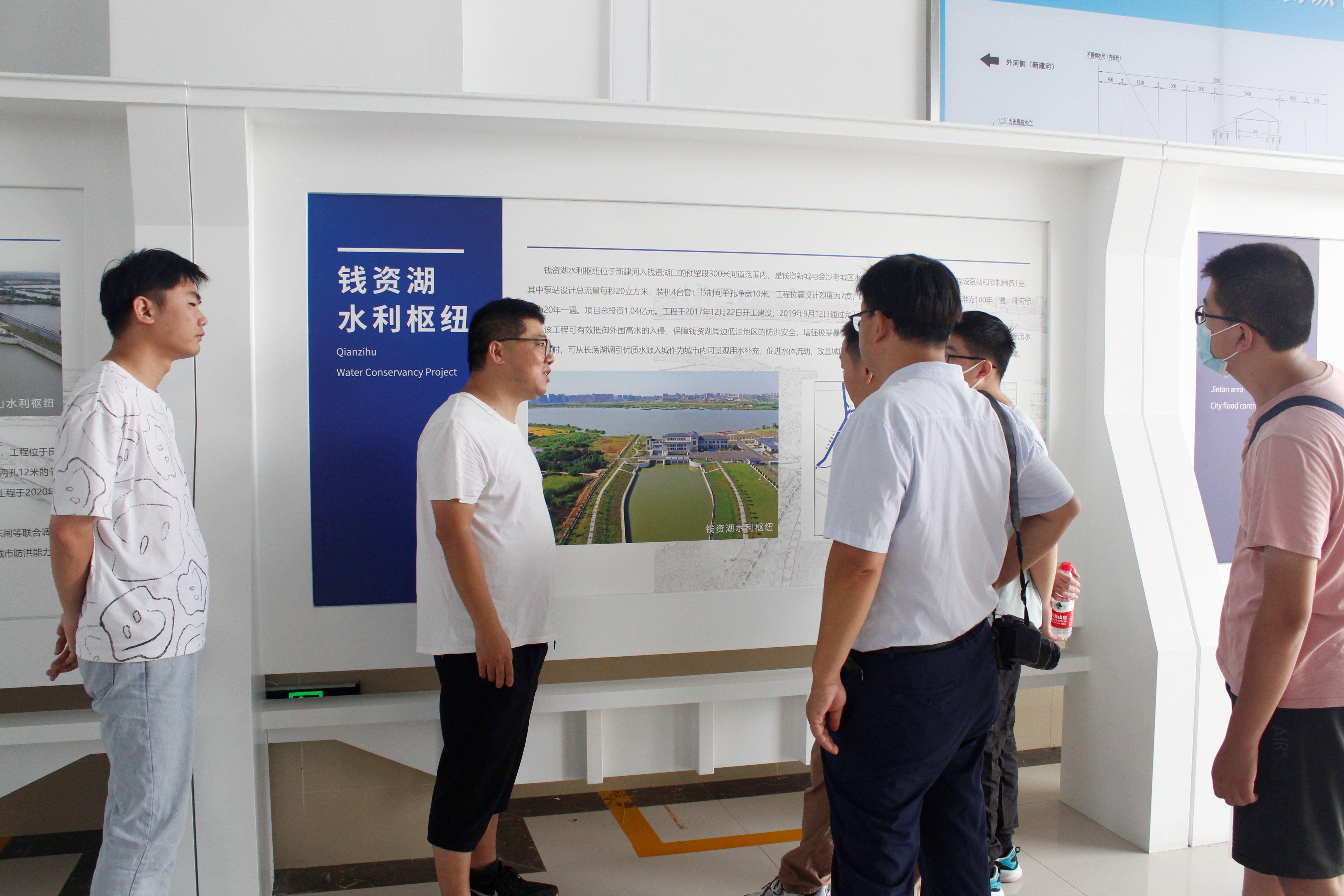 上午第一站,师生参观金坛钱资湖水利枢纽,在水利局徐刚工程师的引导解说下,了解了金坛城区的水利水文情况。钱资期水利枢纽位于钱资湖东常侧新建河上,是新孟河延伸拓浚(金坛区)及综合配套整治工程之一,也是实现防共排涝、抗早补水、水环境改善目标的重要水利工程。
