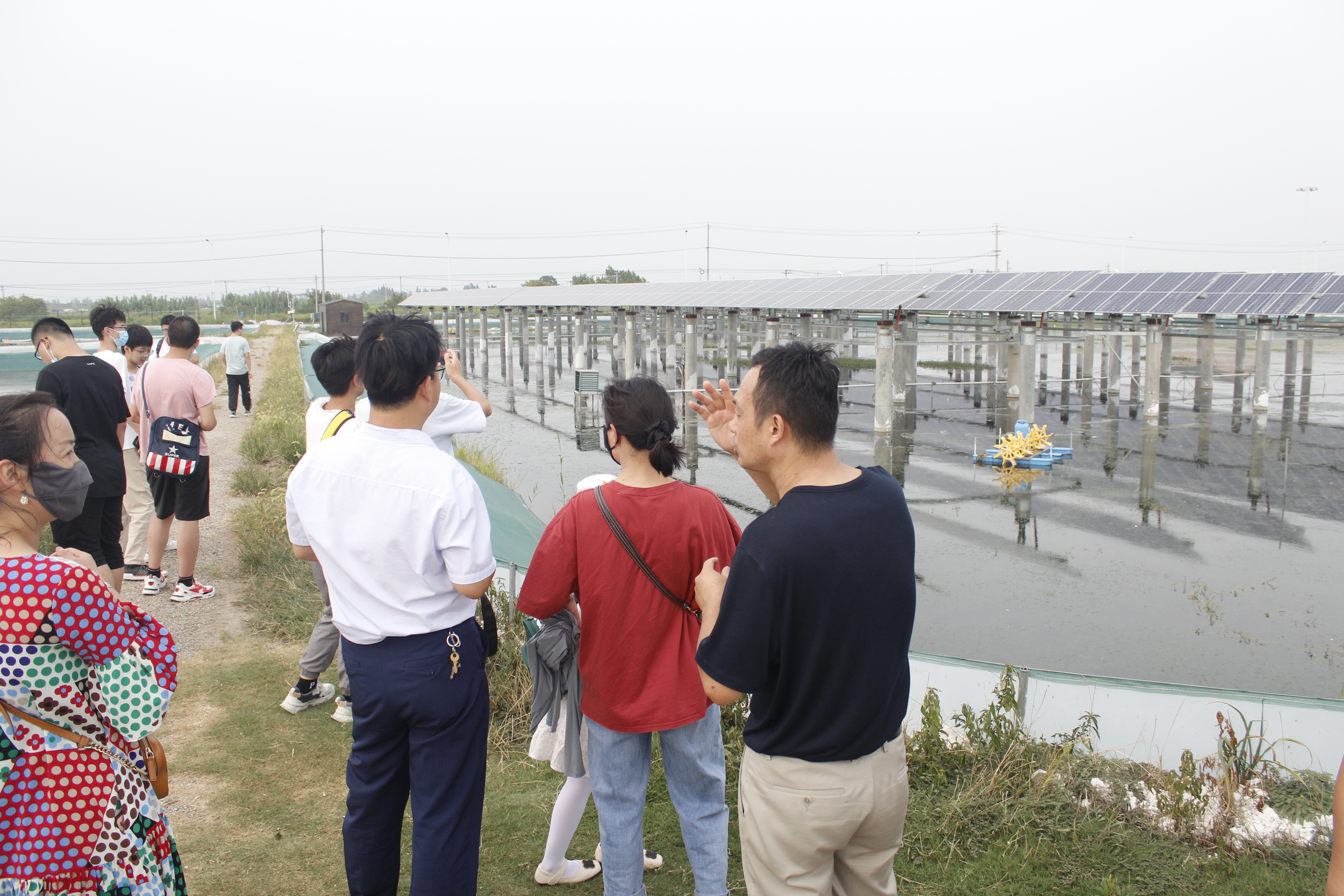 下午,大家来到指前镇的长荡湖农业科技产业园,这里的鱼塘上矗立着一排排光伏板,水上发电,水下养蟹,一池多用,随处可见的自动导航智能投饵船、微孔增氧机、自动梳草船等“黑科技”让人啧啧称赞,同学们不由惊叹,现代养鱼也要懂得科技知识。