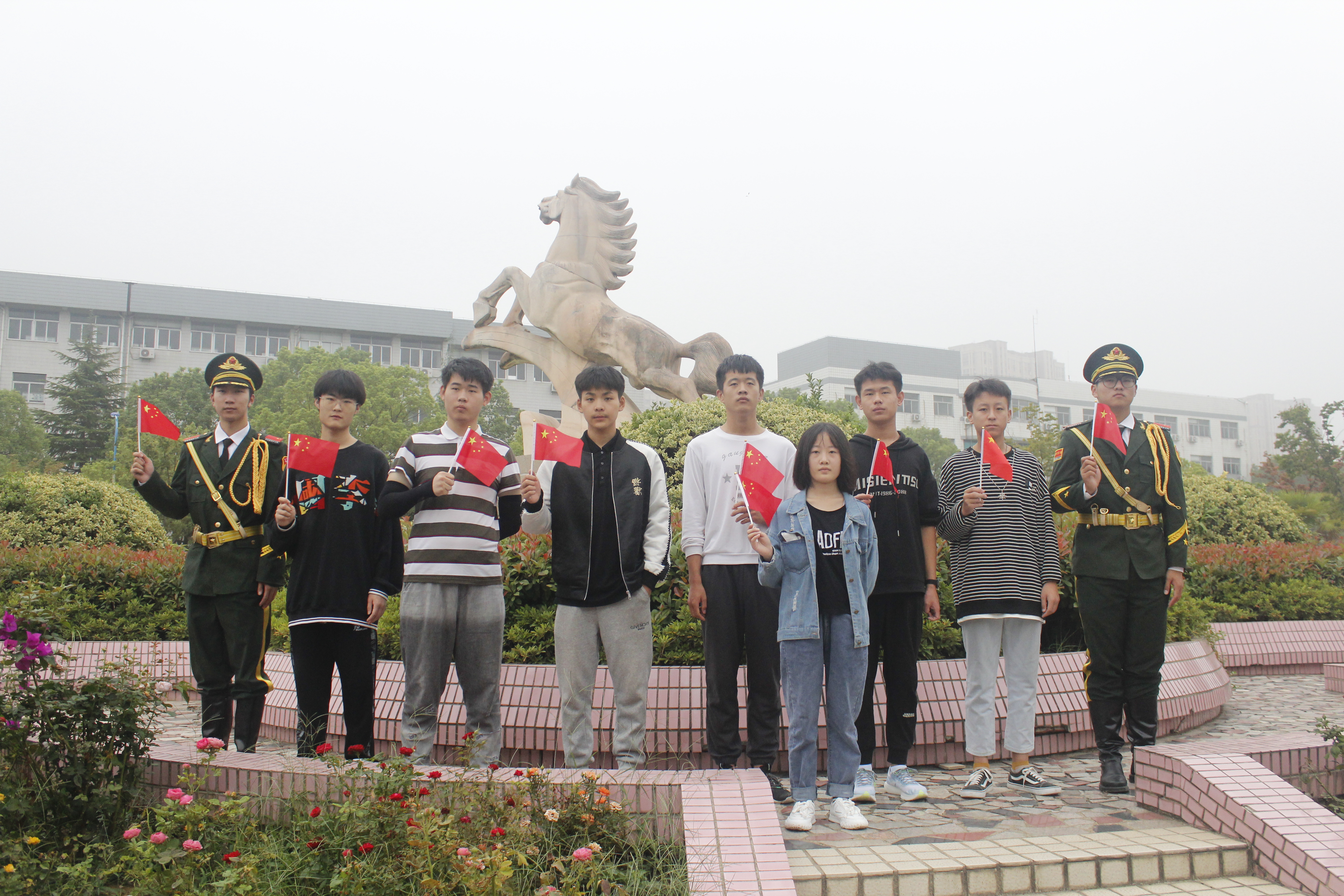 师生们先是在学校升旗广场举行了“我向国旗敬礼”升旗仪式,团委鲍彤副书记主持。校国旗队两名队员在振奋人心的国歌声中将五星红旗缓缓升起,全体师生目视国旗行注目礼、面向国旗唱响国歌,场面庄严肃穆。