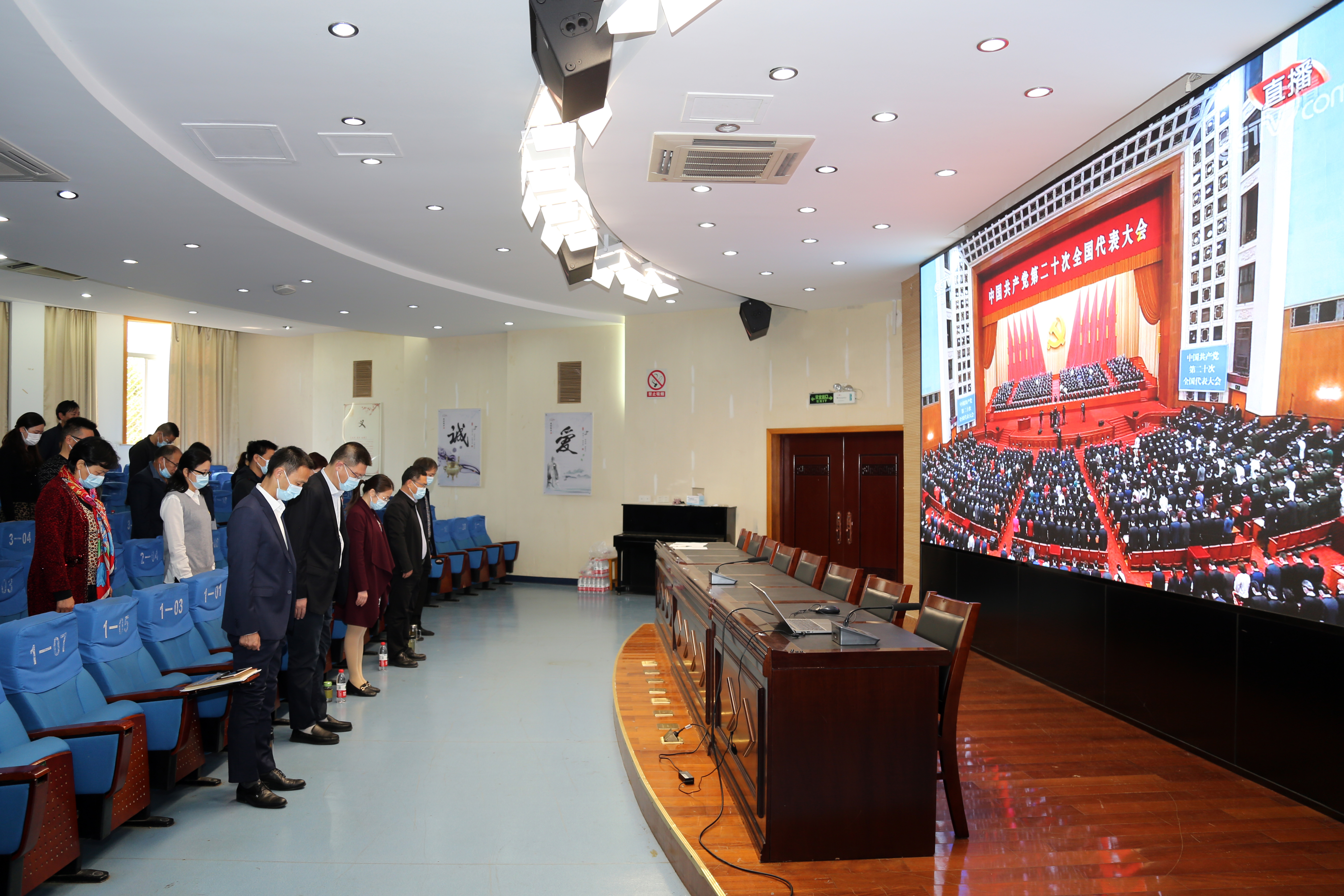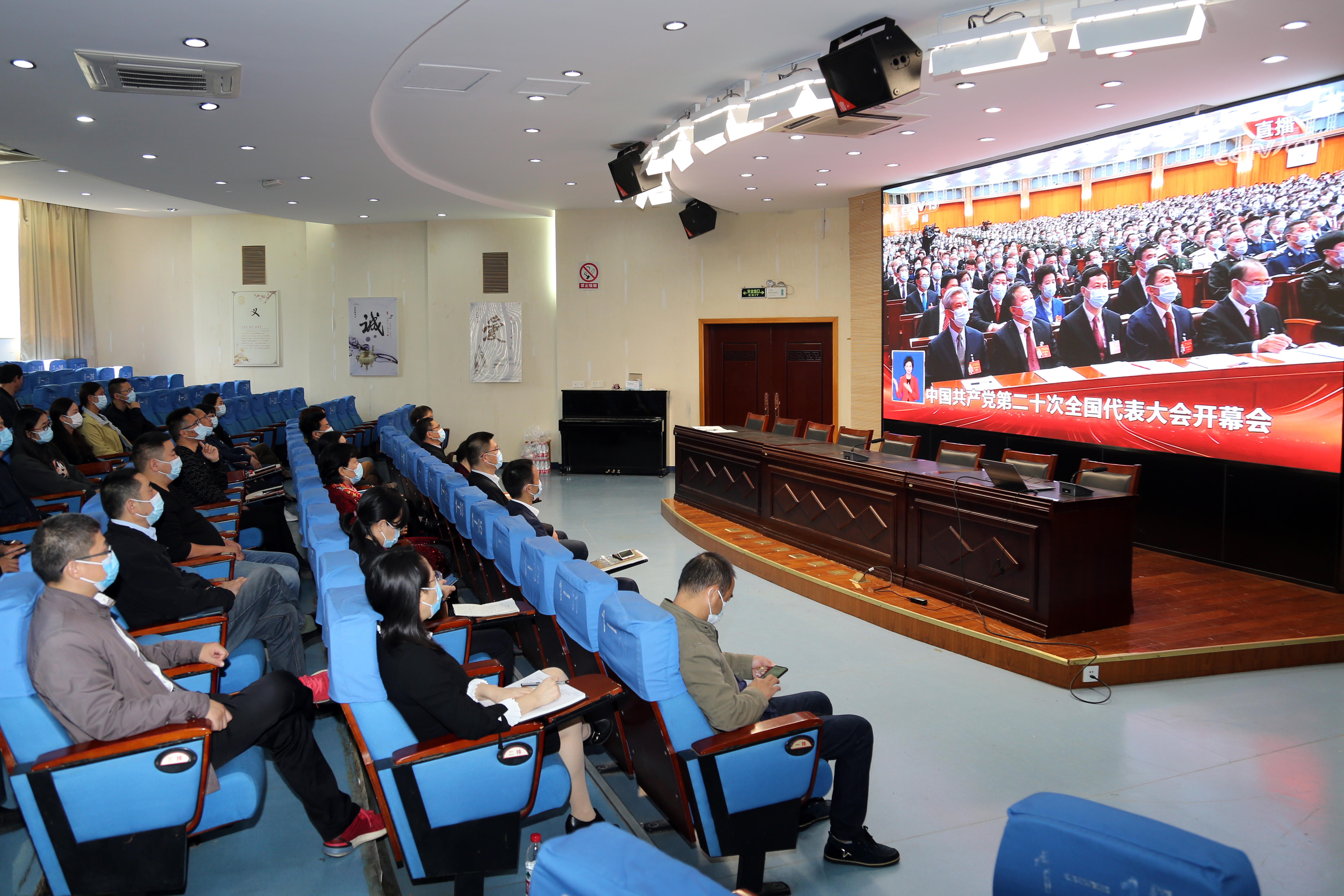 10月16日上午,中国共产党第二十次全国代表大会在北京人民大会堂隆重开幕,习近平总书记代表第十九届中央委员会向党的二十大作报告。为确保我校党员干部、全体师生有序组织收听收看党的二十大开幕式盛况,学校党政行政详细部署,采取灵活多样的学习形式。组织广大党员干部、发展对象、入党积极分子、盟员、留校学生分别在三个会场集中同步收听收看大会直播;非党员教师、全体学生、职工利用电视、网络、广播、手机客户端等渠道分散自主收看。党员干部和师生还通过微信群进行学习讨论、互动交流,形成了线上线下同频共振的热烈场面。