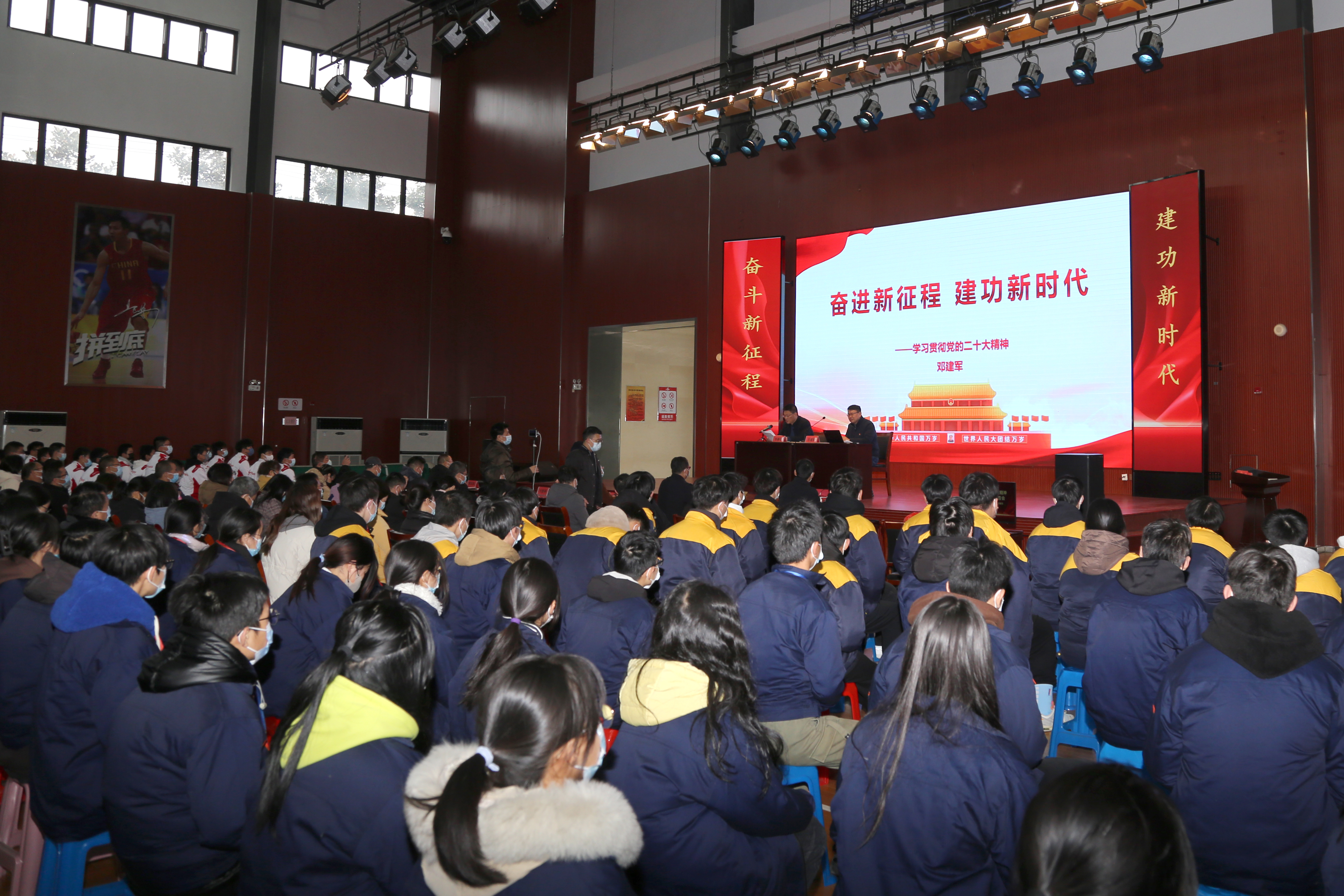 为深入学习宣传贯彻党的二十大精神,坚持全面学习、全面把握、全面落实,切实做到学思用贯通、知信行统一,推动全校各党组织、全体党员干部和在校学生自觉将思想和行动统一到党的二十大精神上来,把党的二十大精神落实到推动学校高质量发展方面,体现到完成年底各项目标任务和谋划今后工作之中,学校特邀党的二十大代表、市委宣讲团成员、全国劳动模范邓建军为全校师生宣讲党的二十大精神。