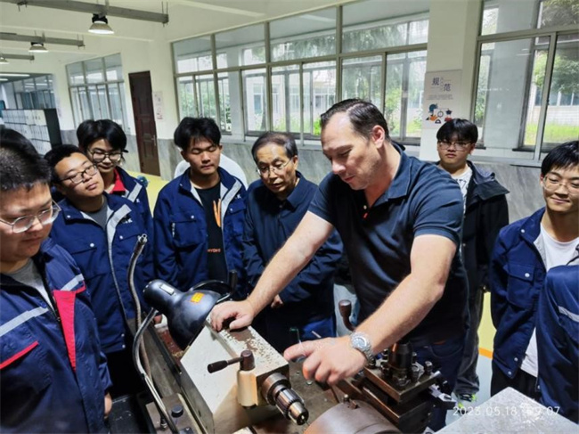 为丰富中德HWK项目教学活动,促进学生深入了解德国文化,加强学生对职业生涯建设、企业精益生产的认知,激发学生的学习能力,培养工匠精神和感恩情怀。根据我校与德国手工业行会(HWK)合作的中德班教学计划,渗透原汁原味的德国职业教育课堂学习。5月16日至5月19日,德国外教Keck Daniel为(中德班)学生进行了授课。
