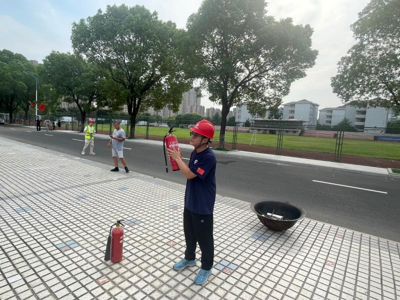 本次演练,学校邀请常州骏安消防技术服务有限公司的工程师为师生讲解了发生火灾时的正确逃生方法及灭火器的正确使用方法,就灭火器使用四步法“一提、二拔、三瞄、四压”进行实际操练,模拟火灾现场使用灭火器成功灭火。