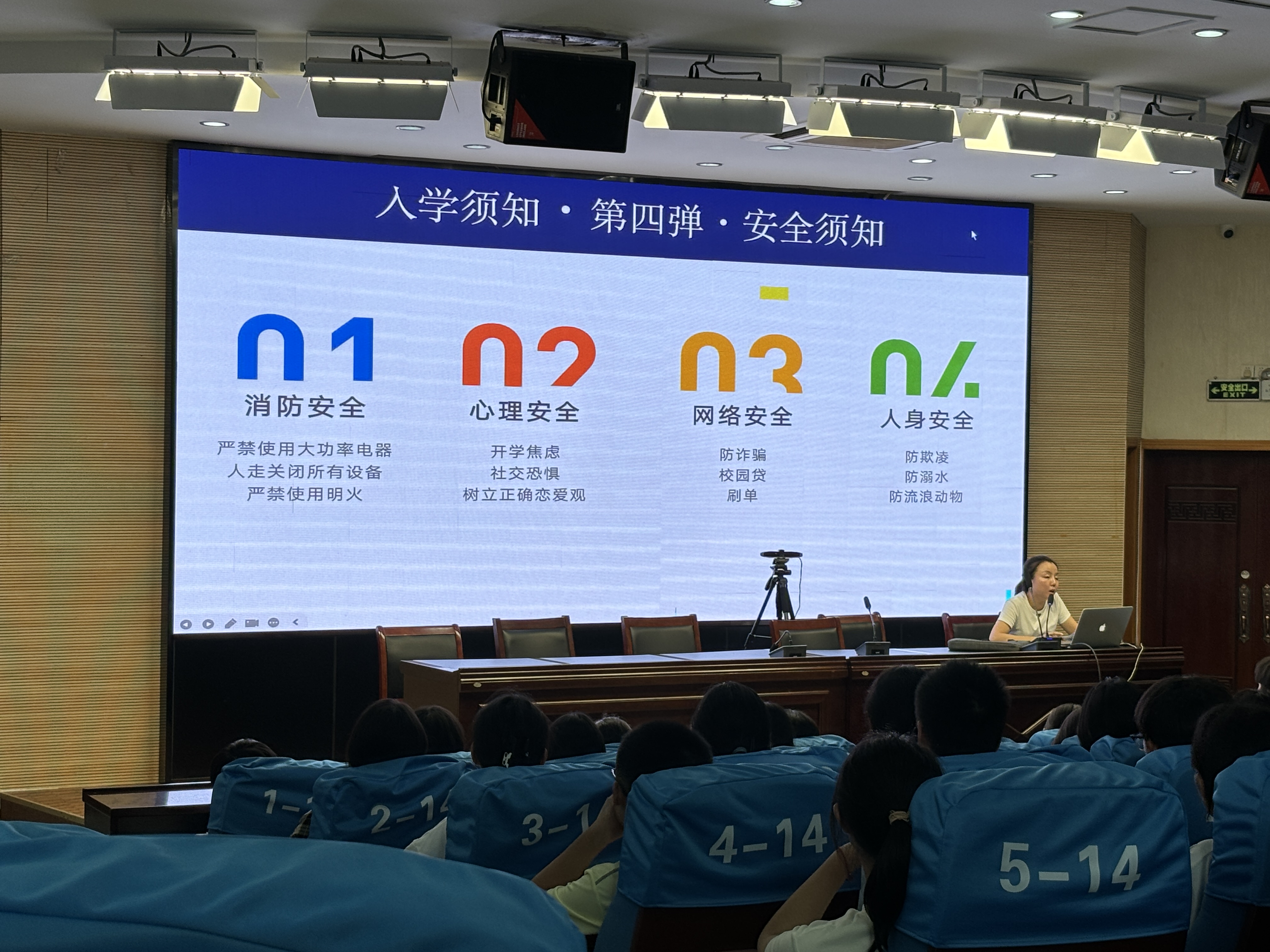 讲座由系部概况介绍、学业规范要求和新生入学须知三个部分构成。讲座介绍了经贸系专业设置、实训条件和办学成果,让新生们对系部概况有了深入的了解;讲座从学分要求、获取证书和实习合格三个方面明确了学生的毕业要求,让新生们确立了在校期间的基本目标;讲座还从校规红线、遵守界限、安全须知(消防安全、心理安全、网络安全、人身安全)几个方面全方位对新生进行行为上的规范。