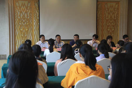 9月15日上午,教务处戴小妹处长、文经专业部王龙祥部长、学工处李志斌副处长、班主任葛林云老师带领15316班旅游与酒店服务管理专业的全体学生赴天成迎宾馆开展专业实践教学,把教学延伸到校外,将课堂搬进了企业。