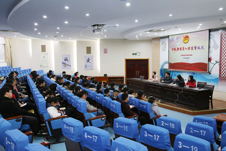 2018年1月2日是个值得纪念的日子,我校团组织又有了新一批优秀成员的加入。入团宣誓仪式活动在校报告厅井然有序地开展,分管副校长周建亮、校团委书记李琴、校团委副书记钱丽华、张兴、团委委员葛益萍、49名新团员及各班团支书参加了本次仪式,入团宣誓仪式由张兴主持。