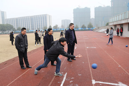 为了营造全民健身的锻炼氛围,加强教职工之间的交流,丰富教职工的业余文体生活, 1月17日下午,省金坛中专一年一度的教职工趣味运动会如期欢乐举行,300多位教职工全部参加了比赛。该校党总支书记、校长卞勇平、副书记李建中来到比赛现场为大家加油助阵。