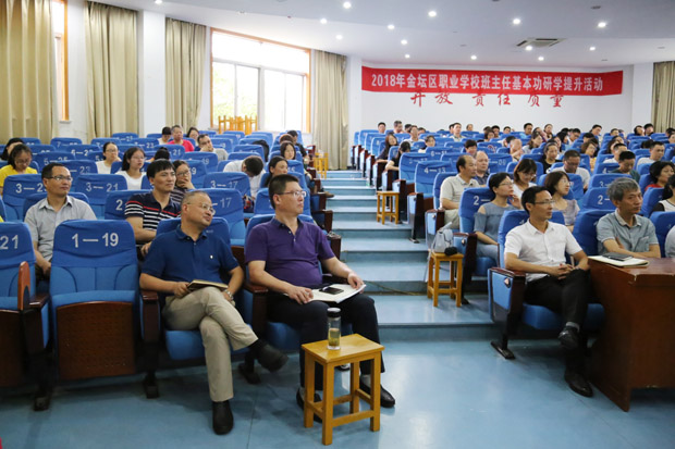 7月2日,学校特邀中国职教学会德育工作委员会常务理事、中国职教学会德工委校园文化建设研究会副主任、江苏省职教学会德育工作委员会副秘书长李国珑来校做德育专题讲座。讲座中,李秘书长以《做学生心灵的牧者——与学生沟通交流艺术》为主题,以为什么做学生心灵牧者、怎样做学生心灵牧者为主线侃侃而谈,从习近平总书记“四有好教师”和学生“满分教师”的标准说起,用鲜活典型的案例,富有哲思的语言,深入浅出地阐释了中职校立德树人的根本任务,号召教师要师德高尚,专业精湛,具有现代学生教育观;要更新观念,以生为本,坚持“三生”理念;要讲究艺术,探索规律,提升育人水平;要给学生喝心灵的鸡汤,做学生心灵的牧者。