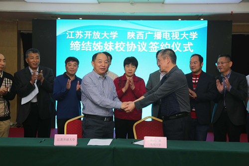 会上,江苏开放大学与陕西广播电视大学签订缔结姊妹校协议,23家结对单位签订了《苏陕结对合作共推社会教育发展框架协议》。我校结对单位是安康市旬阳县职业中等专业学校。