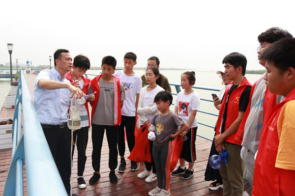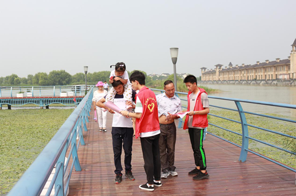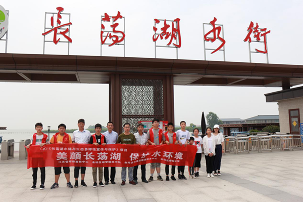 还有一部分志愿者向往来的游客和行人发放《爱我家乡,保护长荡湖湿地》科普宣传资料。