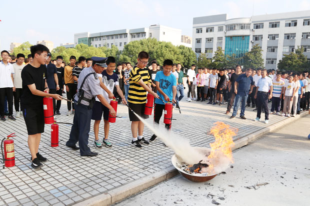 消防安全实战演练,进行了灭火器的实际使用演练,现场演示、讲解了灭火器的使用方法,来自机电技术系的两百余名学生、宿舍管理员、保安、食堂工作人员分别使用灭火器进行了灭火操作演练,掌握了灭火器材的使用和灭火操作的基本方法。