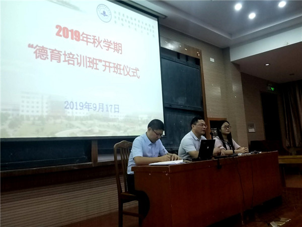 为更好地培养学生的学习习惯,规范学生的日常行为,提升学生自我管理、自我控制能力。9月17日下午,我校“2019年秋学期学生德育培训班”开班仪式在学校小报告厅举行。党总支汤英俊副书记、学工处李志斌处长、学工处姜玉梅副处长、部分学生会干部和76名违反校纪校规的学生参加了开班仪式。仪式由姜玉梅副处长主持。