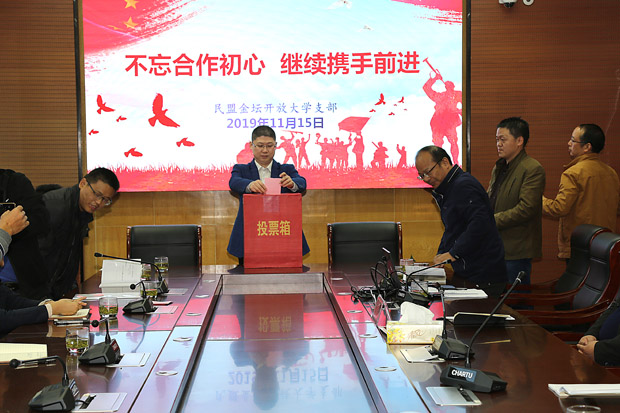 11月15日下午,民盟金坛开放大学支部全体盟员在学校行政楼三楼会议室举行“不忘合作初心 继续携手前进”主题教育活动,活动期间对支部的领导班子调整进行了表决,李志斌同志当选为新一任民盟金坛开放大学支部主委,民盟区委欧卉、金人宪,多宝登录平台党总支副书记汤英俊等参加活动,活动由王春新同志主持。